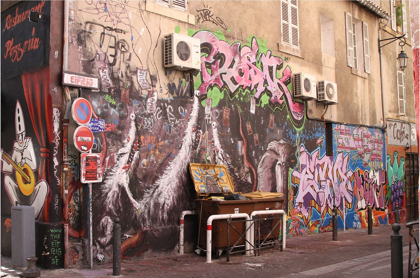 Its graffiti (often frowned upon in Aix) offers a stunning look at modern local life through the streets of the trendy neighbourhood Cours Julien. Graffiti isn’t washed off the walls in Marseille as soon as it arrives, as it is in Aix.