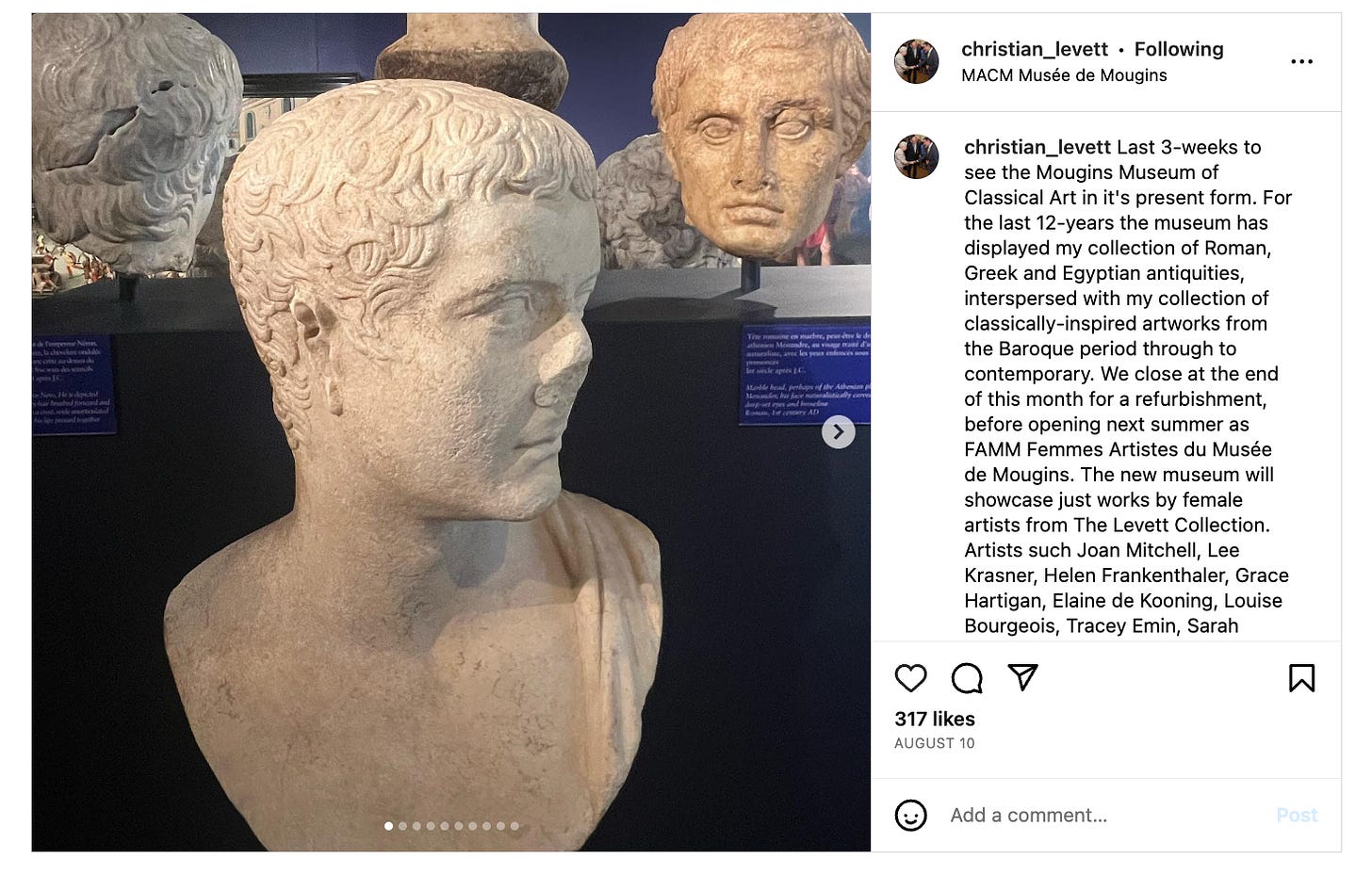 The Mougins Museum of Classical Art, owned and founded by Levett, is located in the south of France near Cannes and welcomes around 250,000 visitors per year.