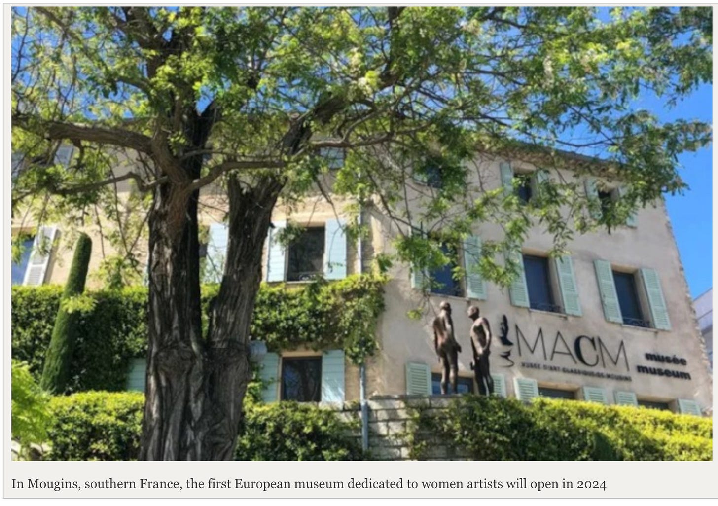 According to a statement on the museum's website, it will close as a classical art museum on August 31st, and reopen in June 2024 as 'FAMM: Female Artists of the Mougins Museum’ (Femmes Artistes du Musée de Mougins), which will focus primarily on contemporary and modern art.