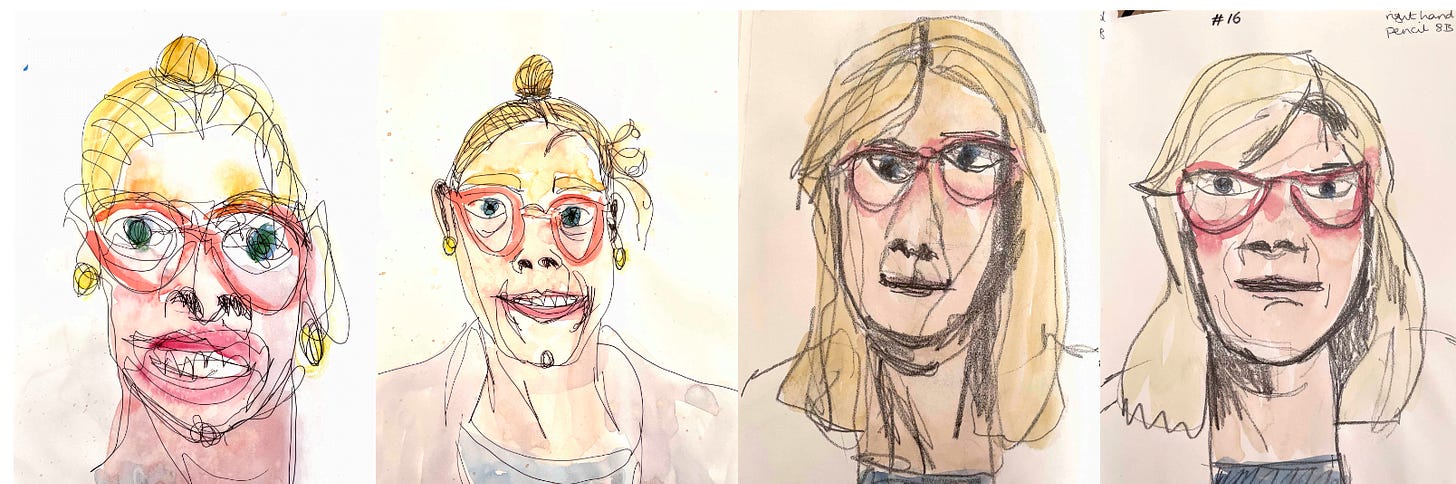 I particularly enjoy blind contour drawing (not looking at the page while you draw) and drawing with my non-dominant hand. Some people have a natural talent for accurate drawing and I am a little bit envious of them, but I’ve learned to let go of perfectionism and I now rather enjoy my chaotic sketching.