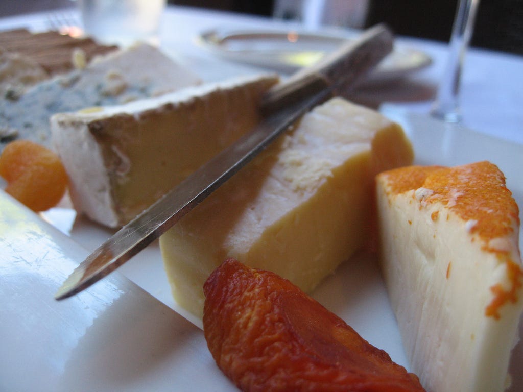 A cheese plate is not an invitation to help yourself with some of everything. You’re meant to choose two or three at most.