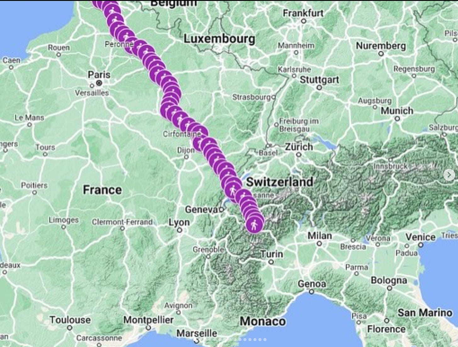 Here she is after 60 days - a total of 1300 km to the summit of #coldugrandbernard and downhill from the summit.