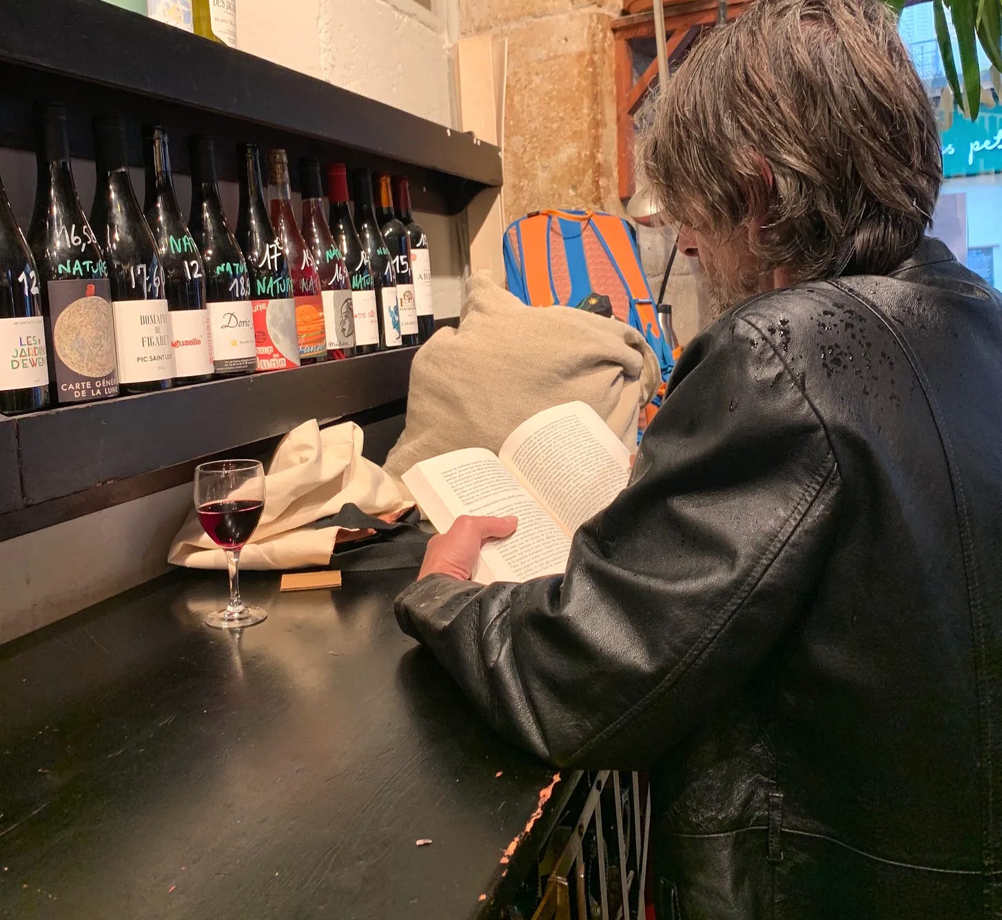 …”The first thing I do in the morning, the last thing I do at night, is read: in French or in English, novels or history, books written by those I know IRL and those who have long since passed. I always have a book in my bag (which I carry in a specially-designed fabric pochette my girlfriend gave me), and whenever I have a spare moment, whether it’s waiting for a tour to begin, enjoying a mid-afternoon citron pressé in a café, or waiting for the gears of bureaucracy to slowly turn, out it comes so that I can lose myself in the written word.