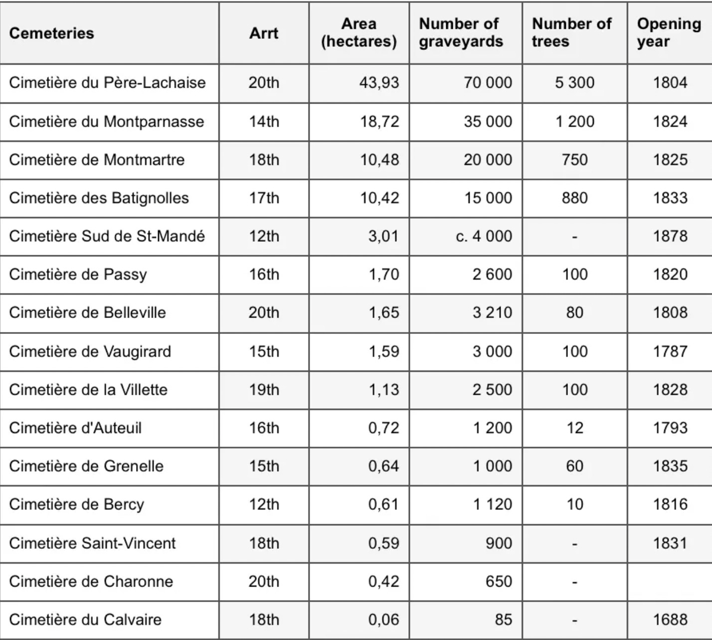 Paris is home to fourteen municipal cemeteries, covering a total of over 400 hectares.”