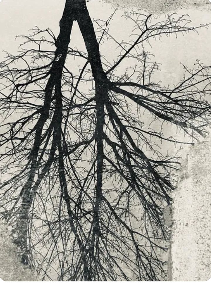 First pic of 2025: tree reflected in a snow puddle.