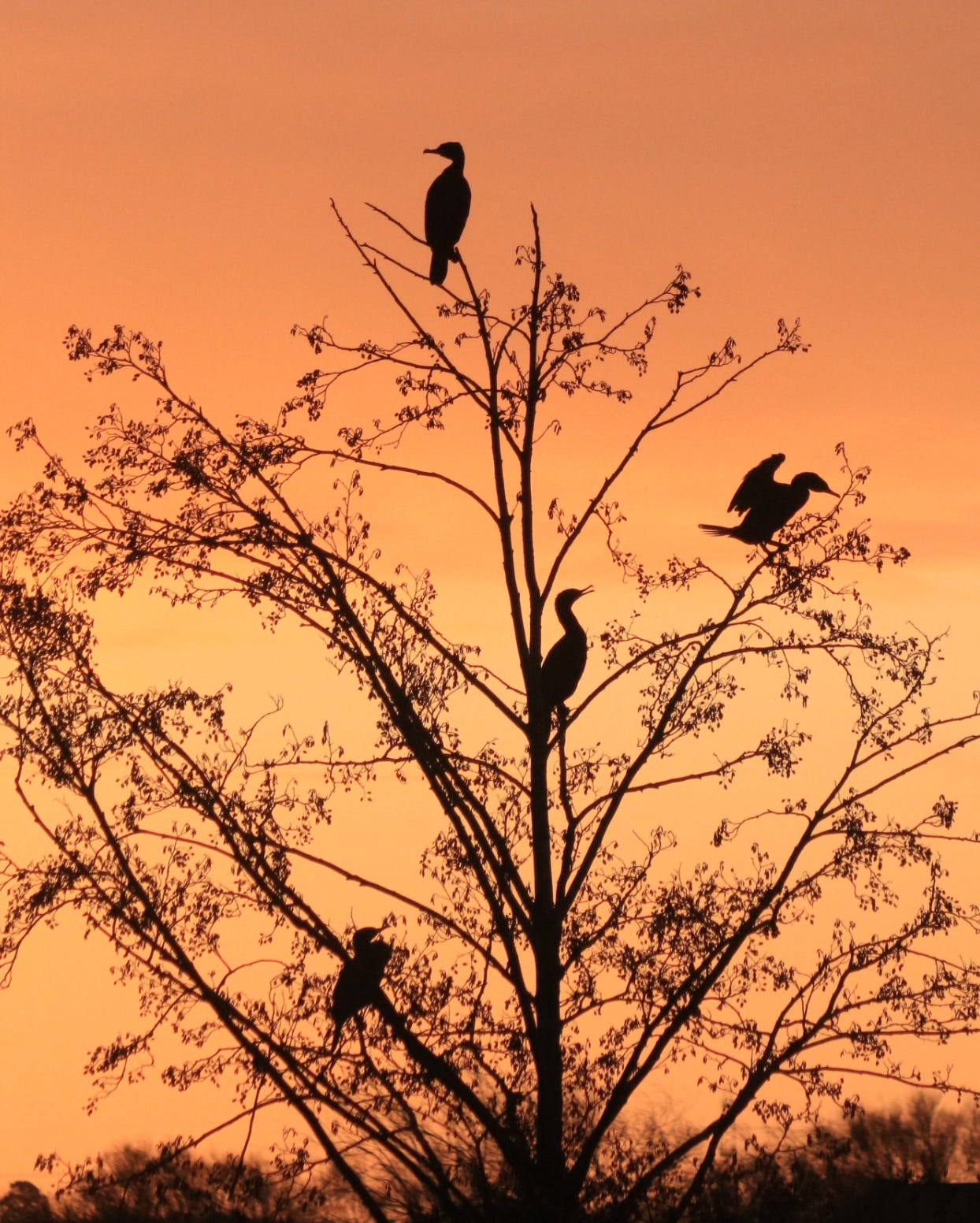 I nipped out in my dressing gown this morning to capture four chilly cormorants at sunrise.
