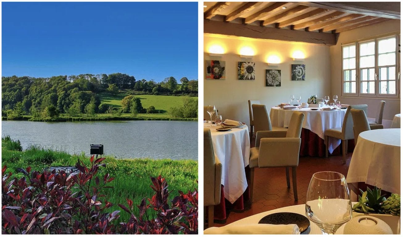 The restaurant is situated just outside the village of Valmont, on the road leading to Fecamp. It boasts a scenic location alongside a lake, complete with ample outdoor seating. Guests can also enjoy views of the herb gardens, adding a touch of natural beauty and freshness to the dining experience.