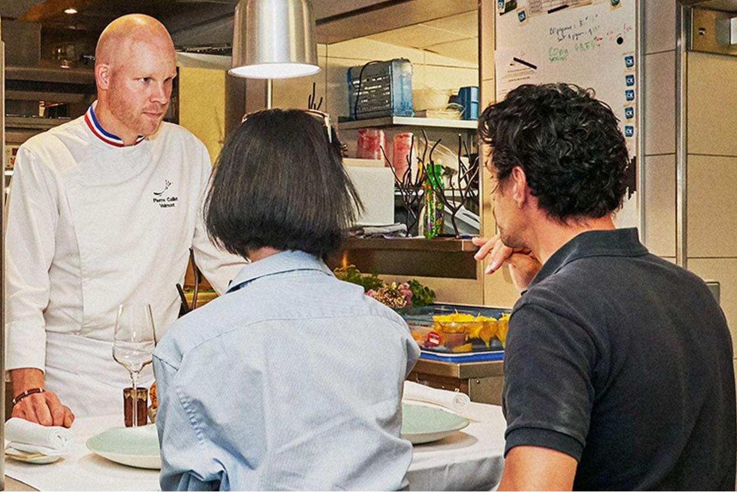The restaurant features a unique dining concept that sets it apart: guests can reserve a table for two right inside the kitchen. Positioned alongside the gleaming stainless steel counters, diners find themselves in the heart of the culinary action. This intimate setup allows guests to witness the meticulous meal preparation and invites them to engage directly with the kitchen team. Questions from diners are welcomed, making for an interactive and enlightening culinary experience.