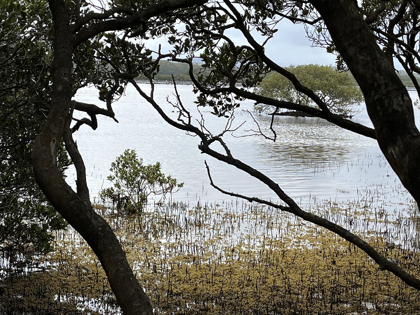 Coastal saltmarsh is a wetland community of the upper intertidal zone of estuaries and bays. At Merimbula, it occurs in a belt between Grey Mangroves and Bracelet Honey Myrtle scrub. Saltmarsh is a mosaic of rushbeds, sedgelands, grasslands, Samphire and Brookweed herbfields, chenopod shrublands, and bare salt pans.