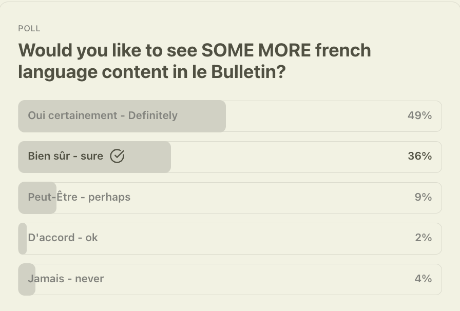 For some time, I’ve been toying with the idea of including more French articles in le Bulletin. How would this sit with you? If you don’t speak French, don’t worry, I’ll always provide either dual language posts, or you can scroll on by those in French, to find those in English.