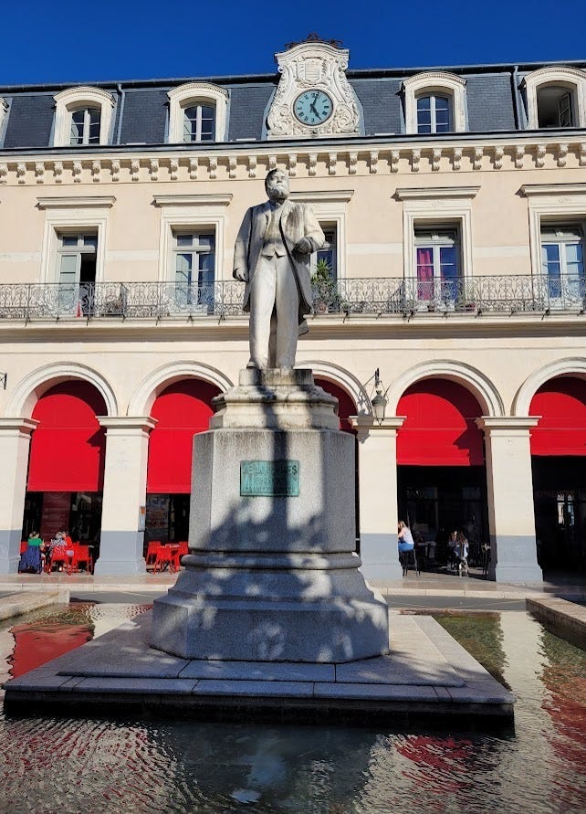 Instrumental in founding the French Socialist Party, he’s especially remembered in Occitanie for his defense of workers’ rights during the arduous miners’ strike in Carmaux. The “enfant du pays” graces the Arcades side of the square.