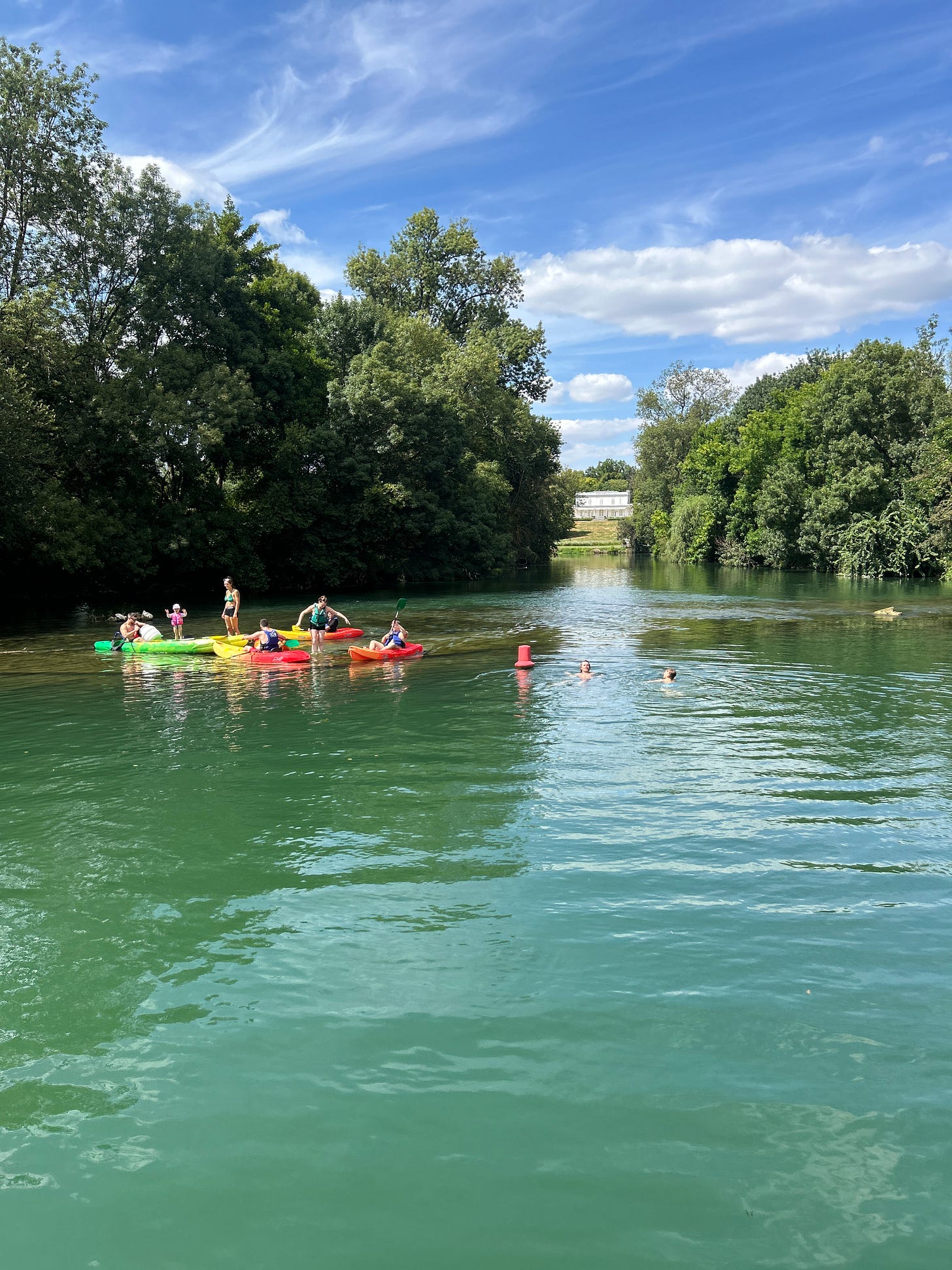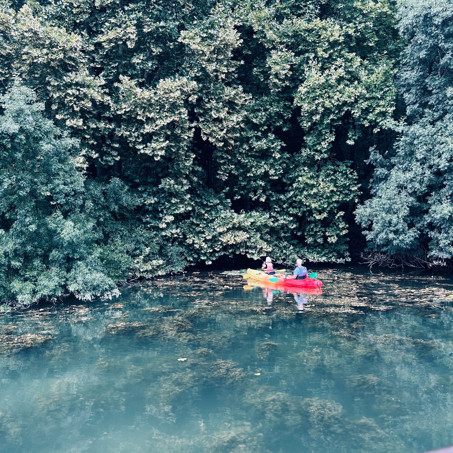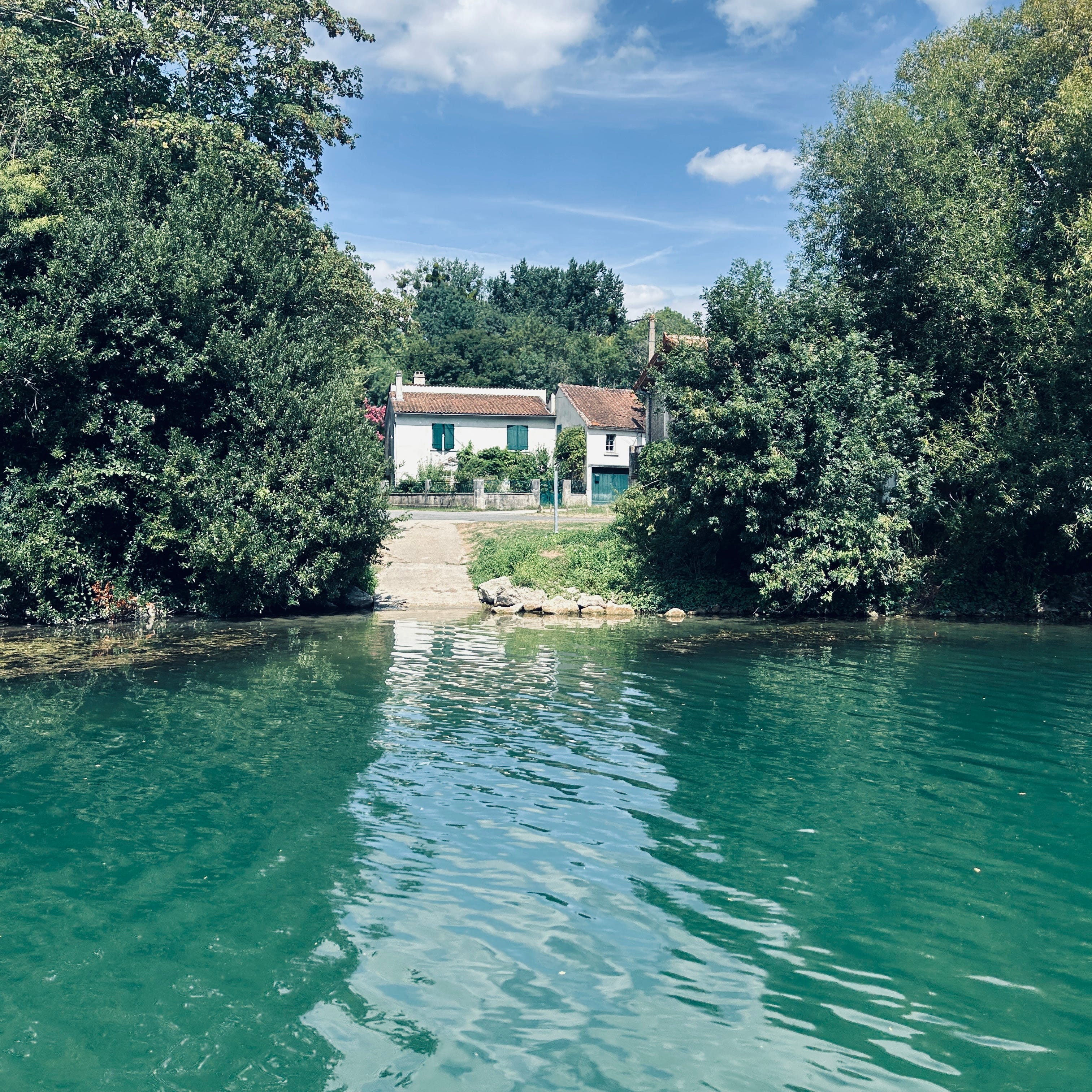 I’ve never seen so many canoes doing being used to do so many different things: picnicking, fishing, sleeping, spanning tributaries, and animal transportation to name a few. The river was literally awash with canoes, all Yellow, probably because they all came from the same rental outlet. Other than the boat we were on it was the main means of transport on the Charente. Perhaps because it was holiday season; I imagine in the cooler winter months the river looking less like a lawn that a swarm of Yellow bugs had landed on.