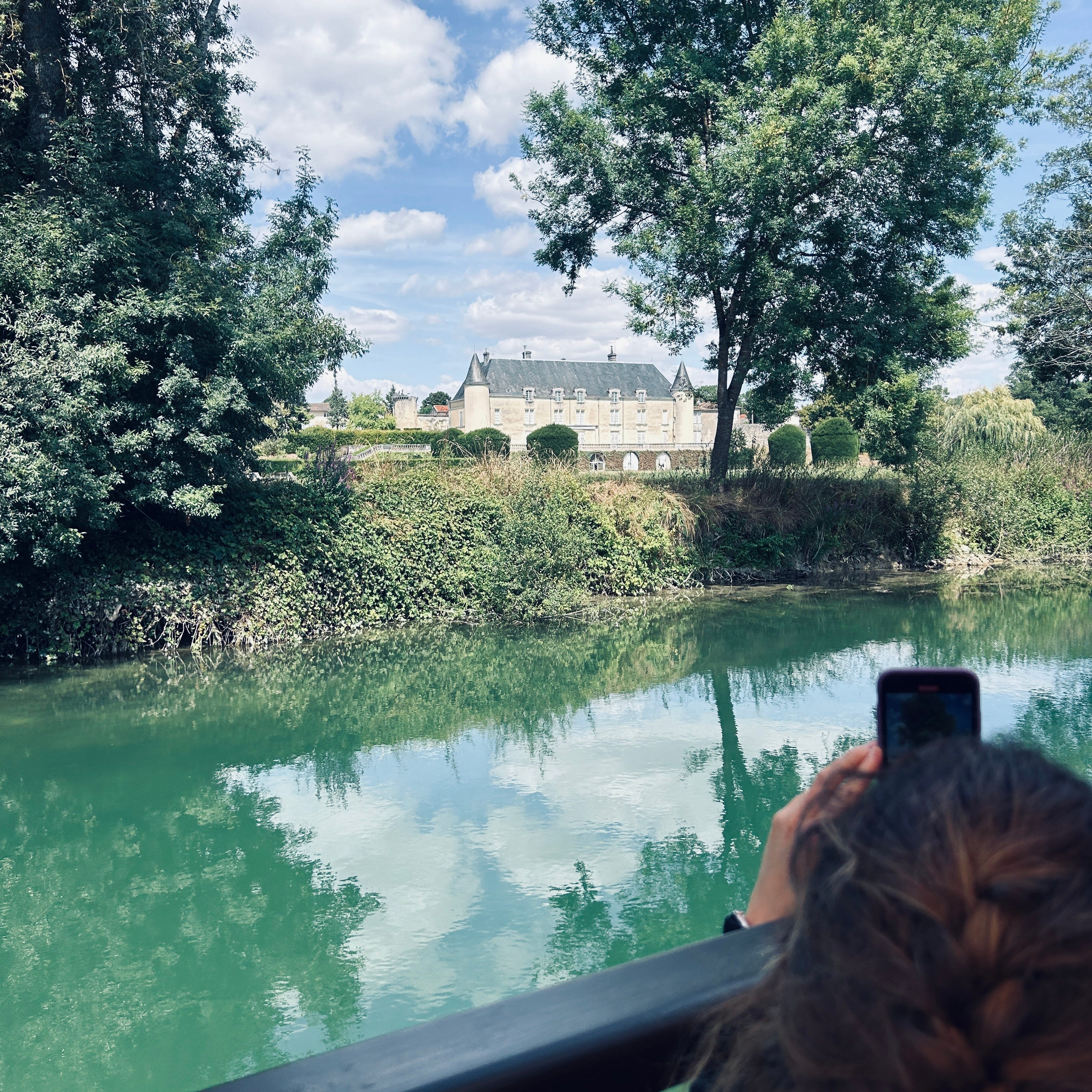 Our nerves quietened, we arrived at the ‘Les Quais Maurice Hennessy”, the embarkation point for ‘La Demoiselle’. You can see the wealth of Cognac all around you, exquisite commercial and private buildings, mainly in the Beaux-Arts style so prominent at the time, all with beautiful gardens and entrances, I felt like we were stepping back into the 19th century when the Cognac trade was at it’s height. The architecture shows a release from the demise of the Salt trade at the end of the 18th century, almost a celebration of a new found prosperity from Cognac.