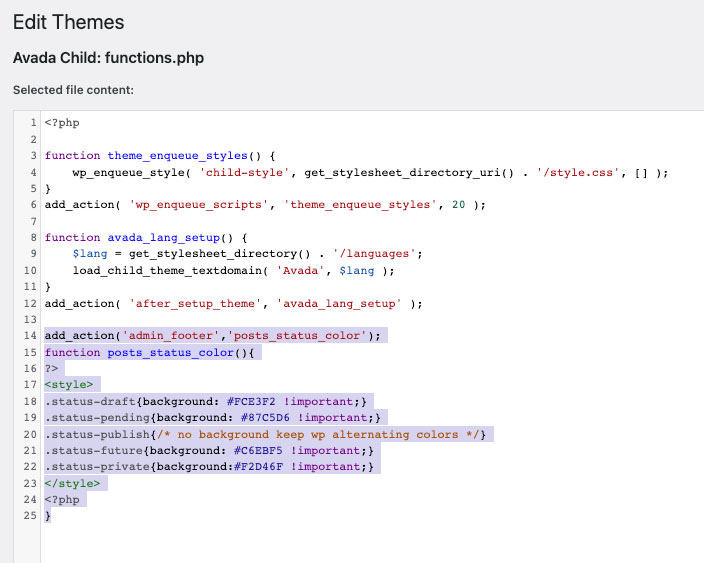 Colour code your pages and posts in WordPress admin so that it’s quicker/easier to identify what’s what.