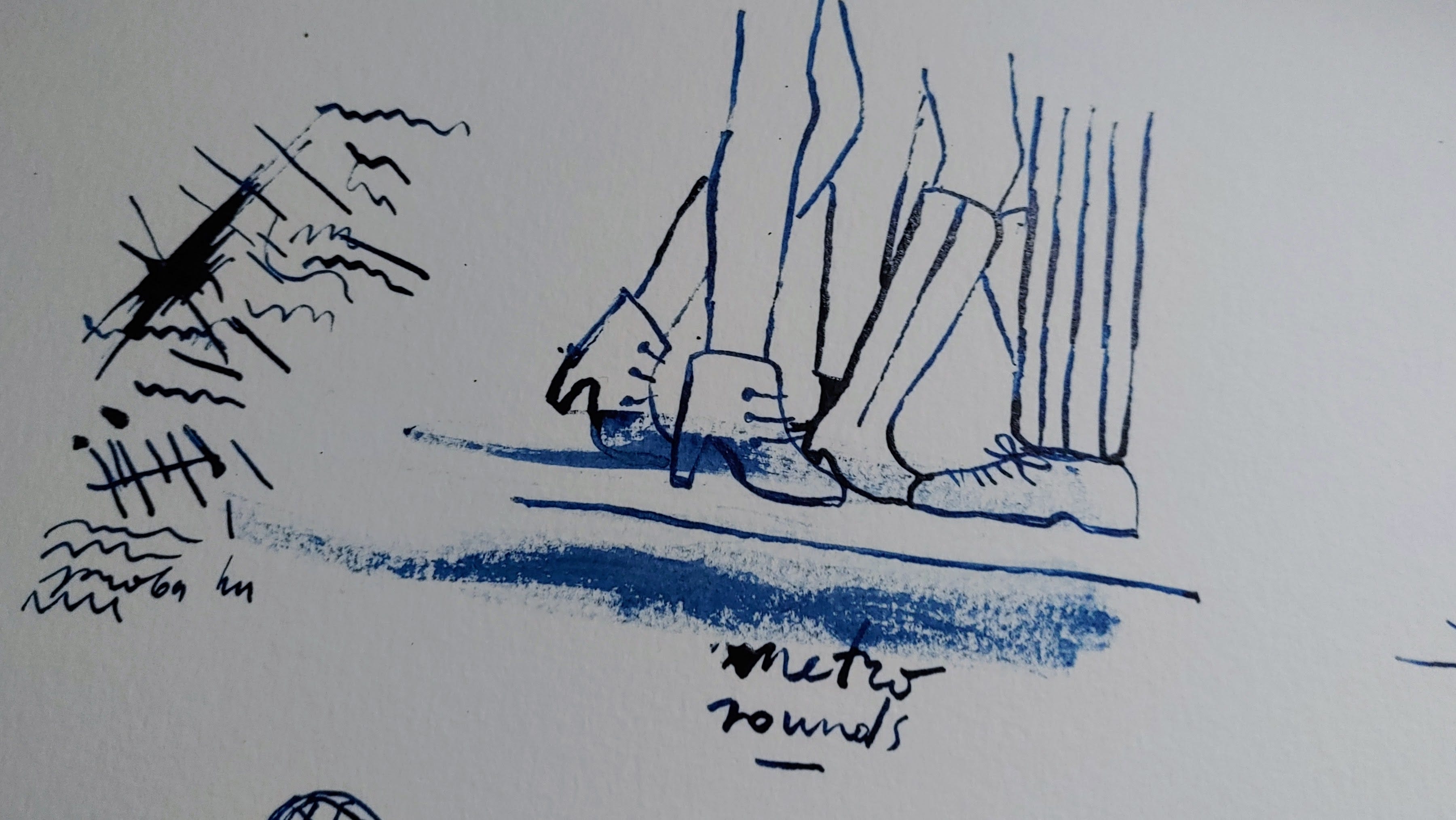 I recorded the sounds and listened to the recording, then I drew the sounds again – Here is my blobby take.