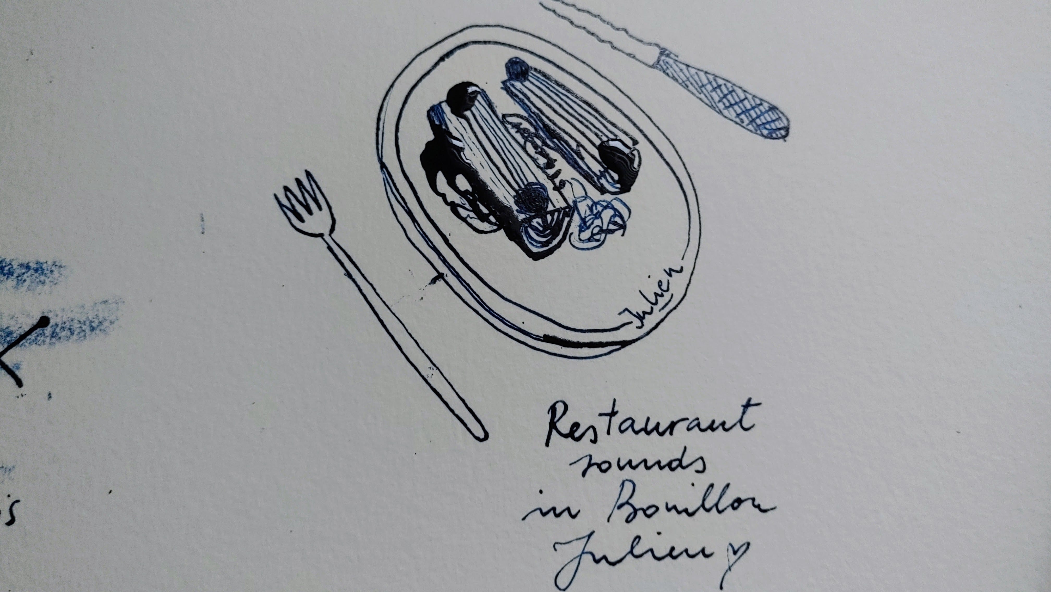 Last week, I engaged in this exercise on my way to dinner with a friend who invited me to celebrate a successful year in her business. The dinner was held in the charming Bouillon Julien, an Art Nouveau restaurant from the turn of the century. I decided to approach the whole experience from a different perspective, an arty one, yet keeping it simple.