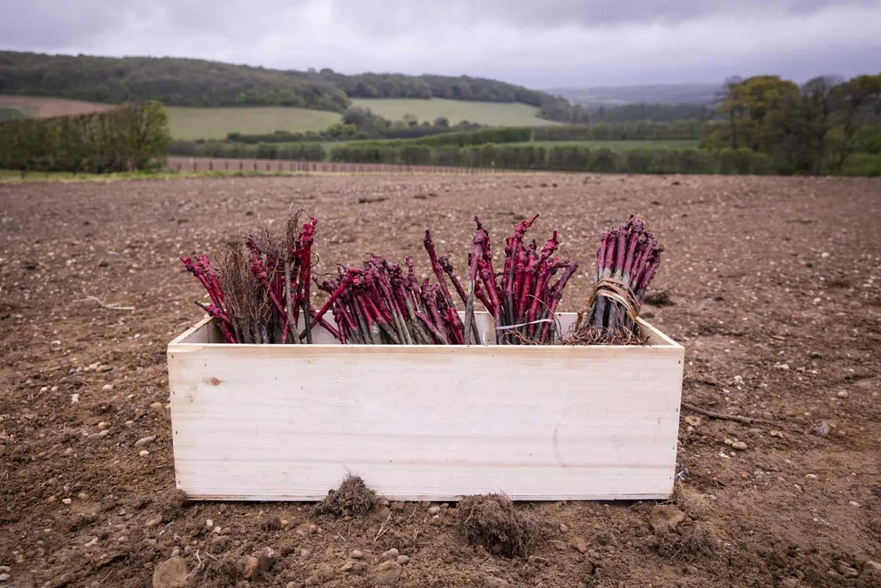 Subsequently in 2023, 10 hectares of land were purchased between Selling and Faversham on Featherbed Lane. Taittinger feels the terroir here is perfect for Chardonnay grapes. The vines were planted in 2024. First harvesting from this parcel of land is planned for 2027.