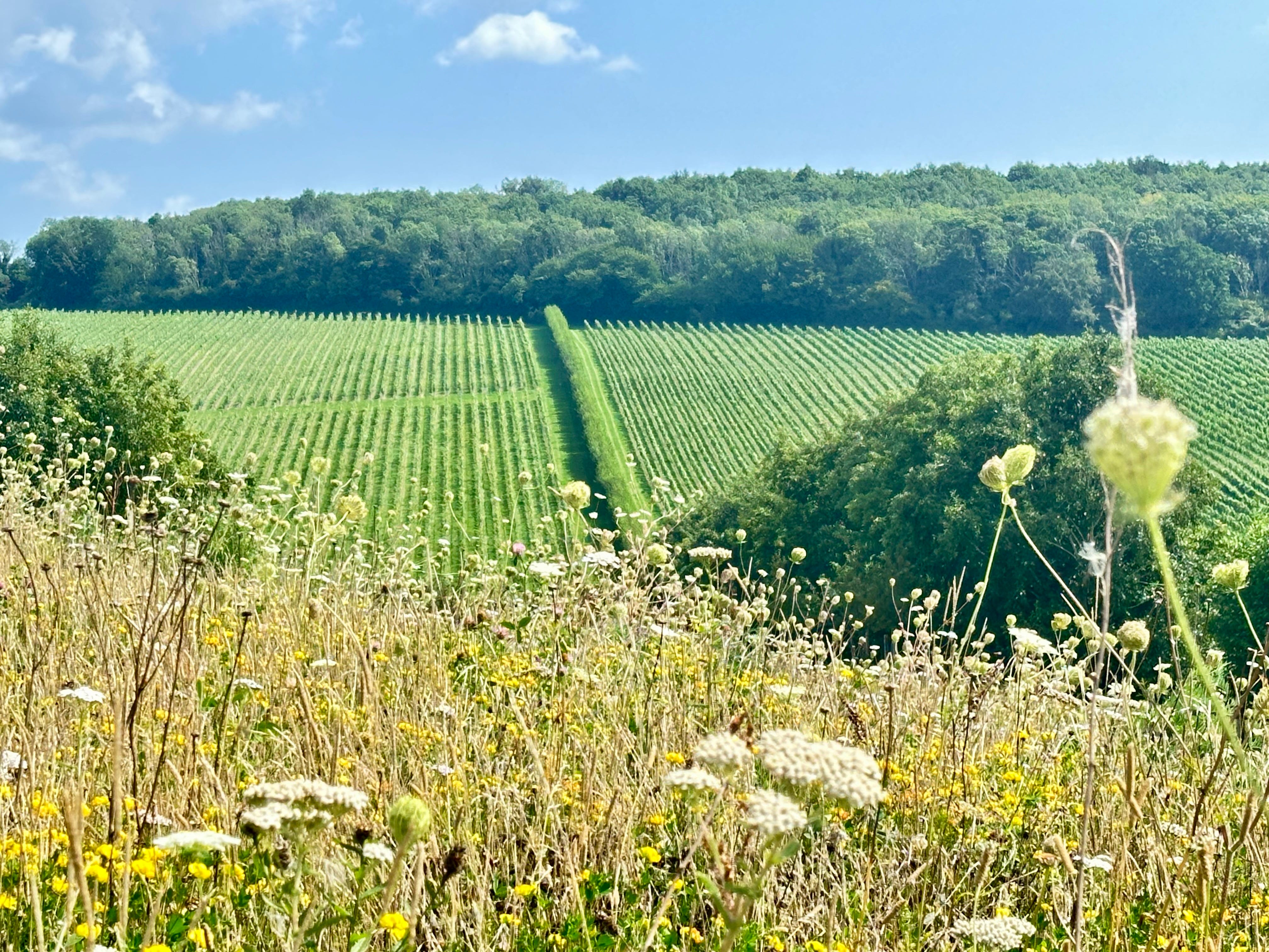 Photo: author, Pinot Meunier vines in front of the terrace at Domaine Évremond