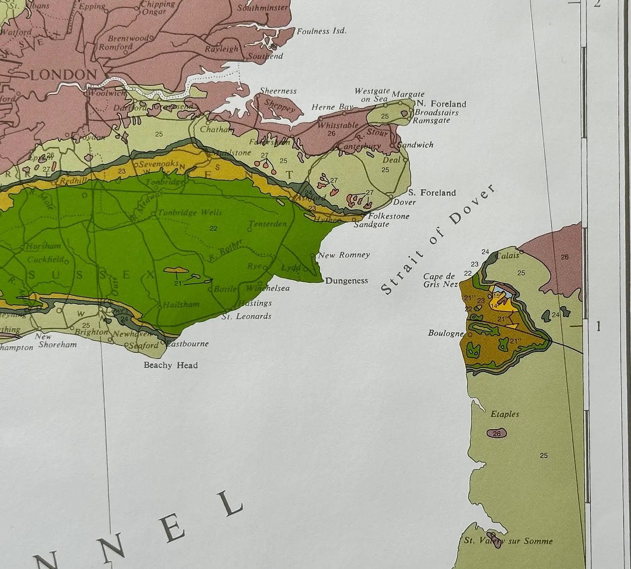 Geologically, some parts of Kent have identical soil to Champagne. There is a large geological syncline called the Paris Basin. This chalky, alluvial soil can contain flint nodules in places.