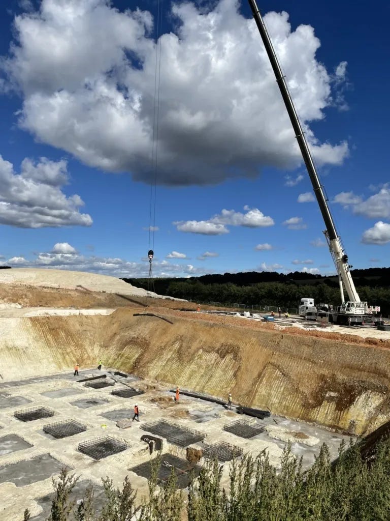 First a 25 metre deep, 40000 metre cubed hole was dug in 2022, using the same company that excavated the Channel Tunnel.