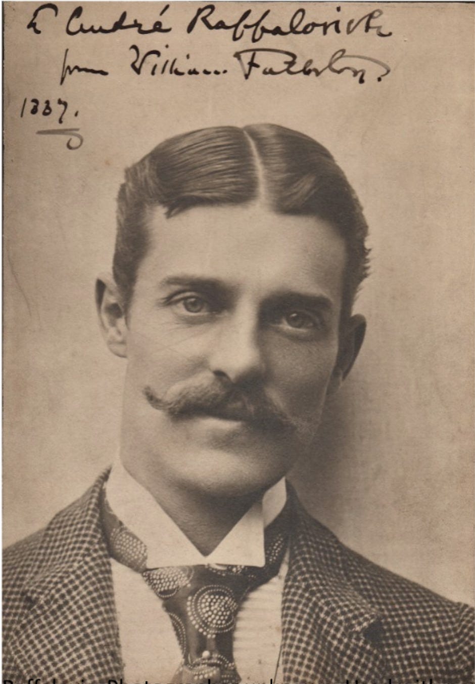 Brains & culture seem non-existent from one end of the social scale to the other, and half the morons yell for filth, the other half continue to put pants on the piano legs.”Photograph of William Morton Fullerton inscribed to André Raffalovic. Photographer unknown. Used with permission: William Andrews Clark Memorial Library UCLA