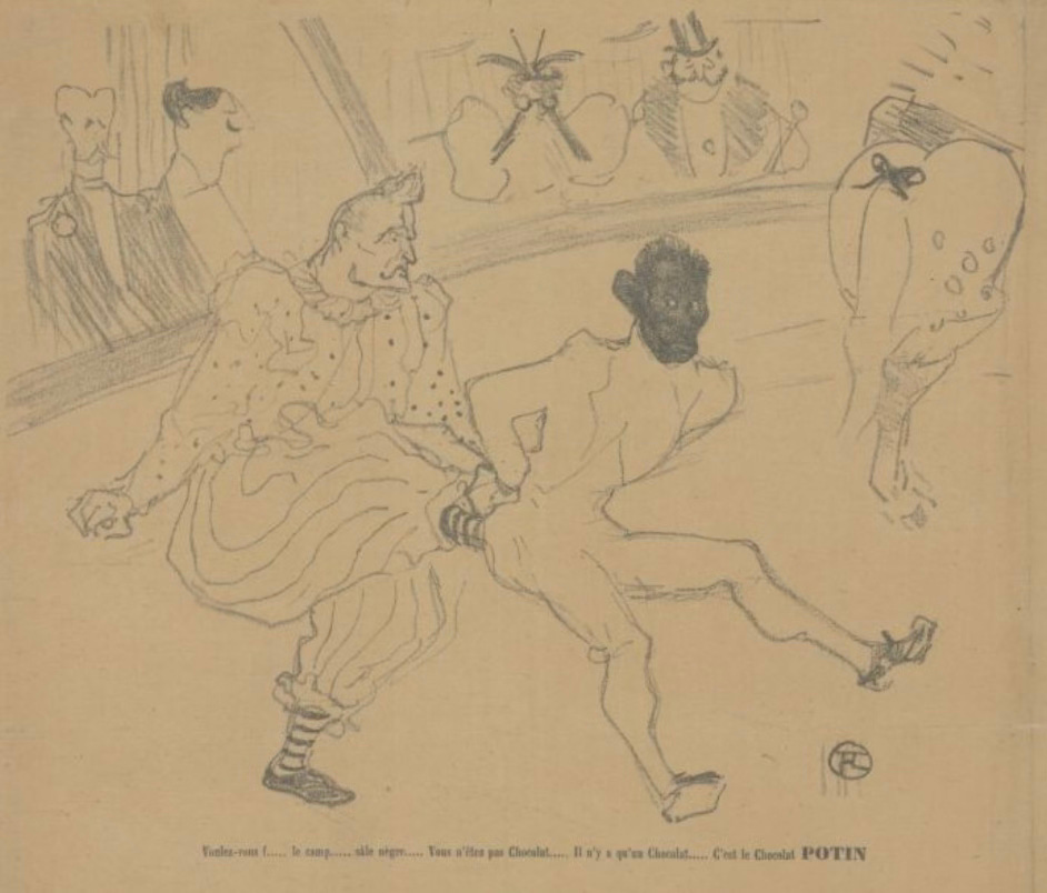 Circuses were once a major entertainment event — and the Nouveau Cirque happened to be where the crème de la crème of French society went for fun. So the fact that Chocolat was center stage there speaks volumes about his talent to entertain the masses. He and Foottit were so popular, the famous painter Henri de Toulouse-Lautrec was inspired to draw several sketches of them, like this one: