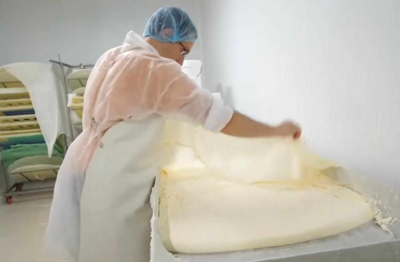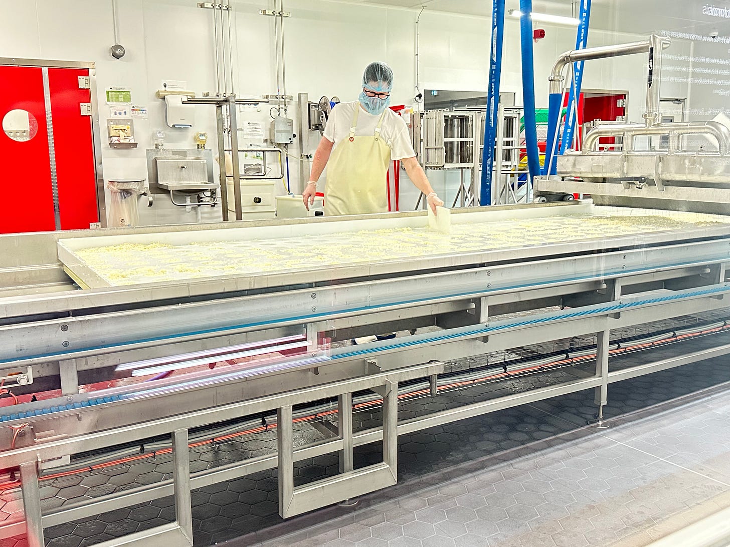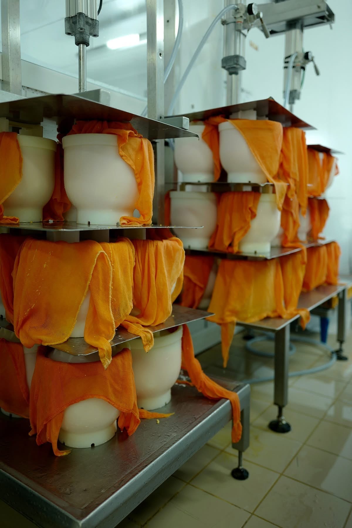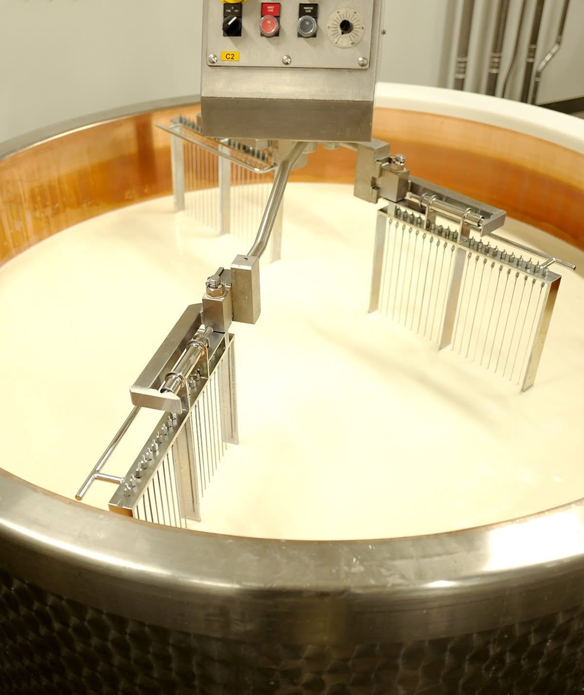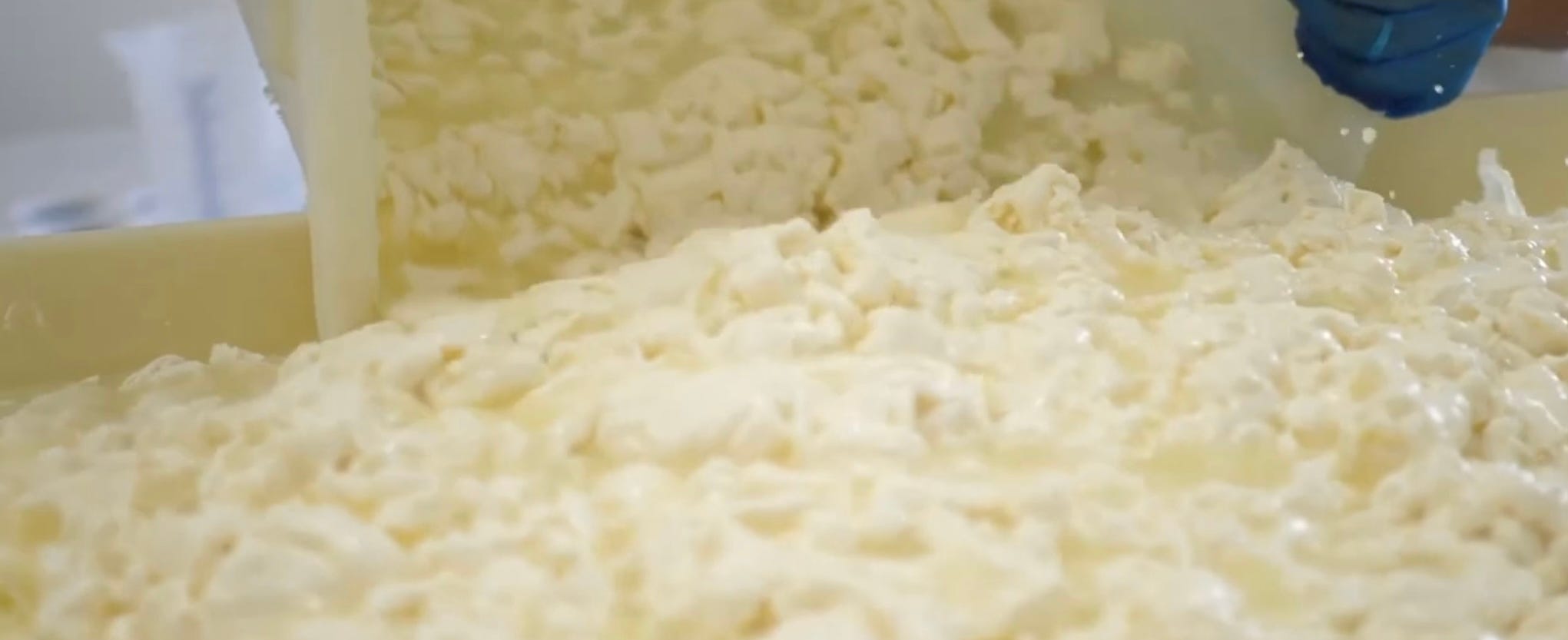 The curd is the “solid” part of the milk, which will be placed in moulds to shape the cheese.