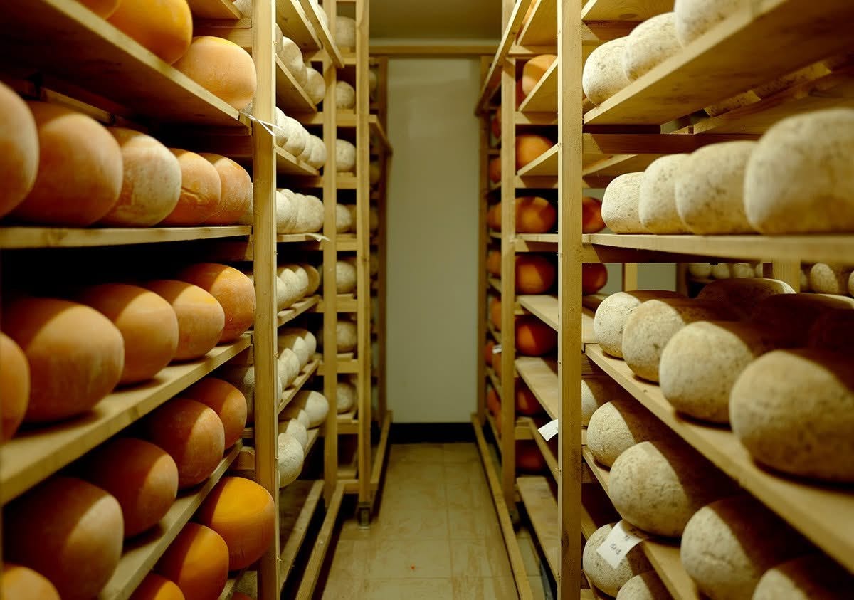 Once salted, the cheeses are removed from their moulds to begin ageing in the cellar.