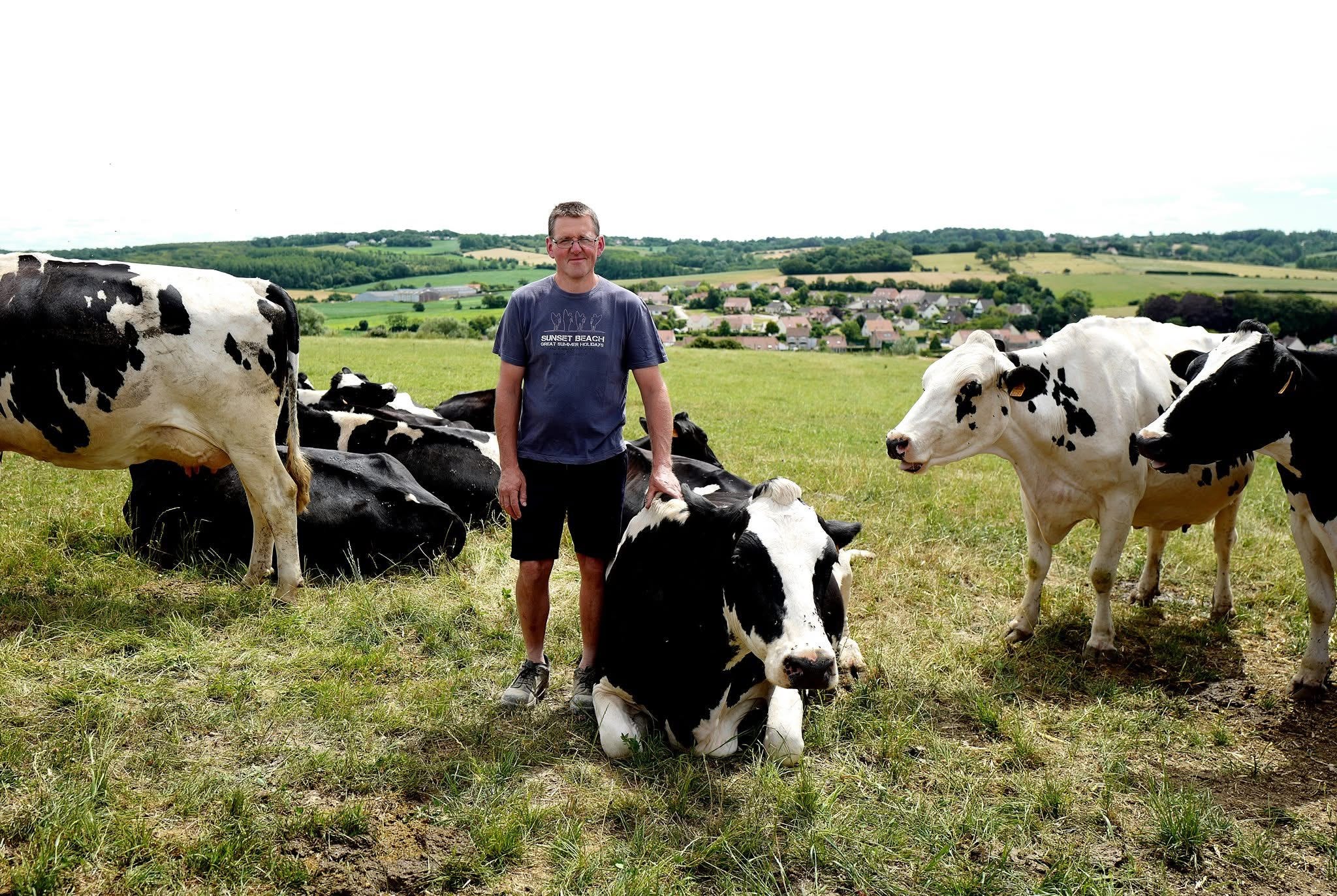 His herd consists of 75 dairy cows. His farm contains 71 hectares, including 43 hectares of pasture. 95% of the feed is produced on the farm, with the remainder coming from a regional cooperative guaranteed GM-free.