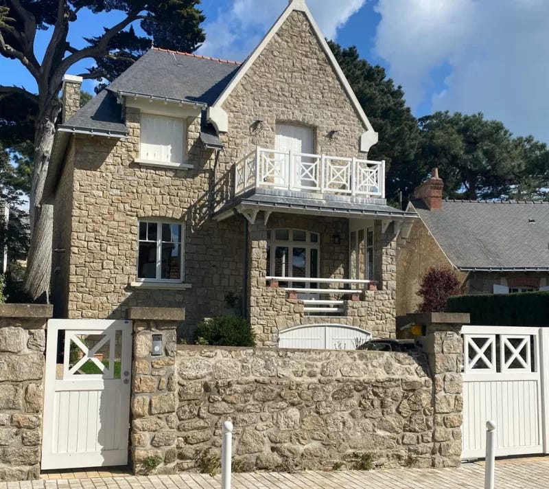 It was a beautiful walk and it was wonderful to find ourselves strolling through these authentic neighborhoods. The houses were of a certain style which is unmistakably La Bretagne. Often a white stucco-style exterior along with colorful wooden beams decorate the structure. There is often a peaked roof and a front room that looks like a small lookout. Perhaps it was? Each house has a name and one can’t help but wonder about the many stories and memories that each home holds. If only those walls could talk!