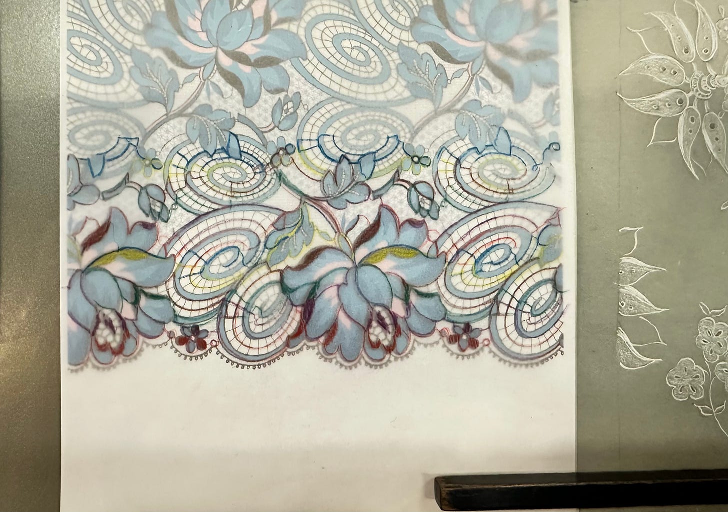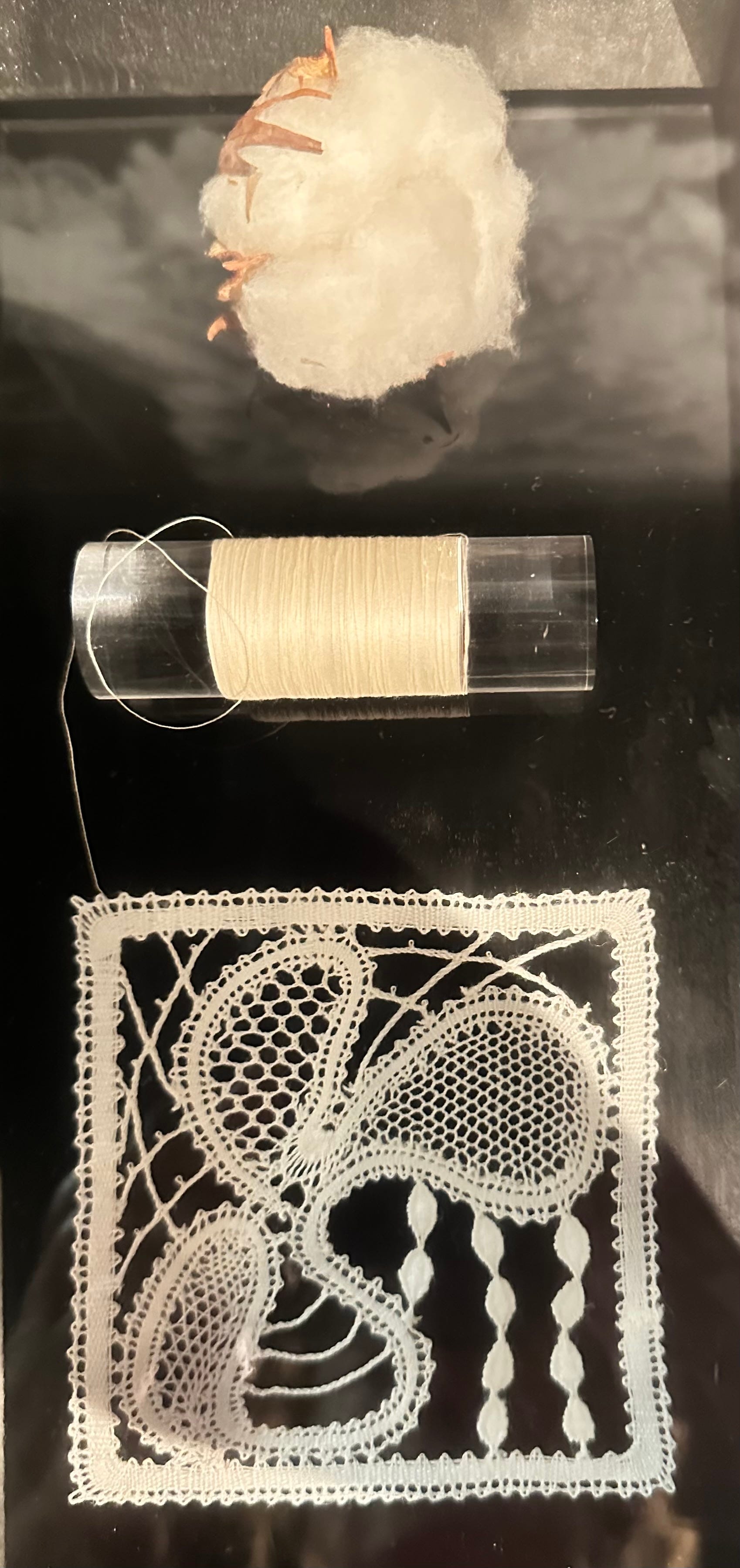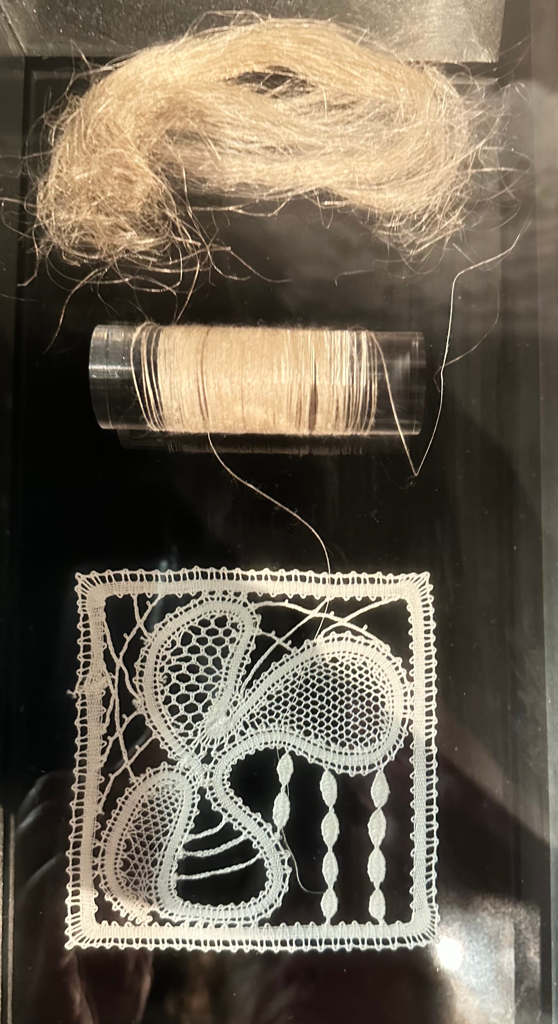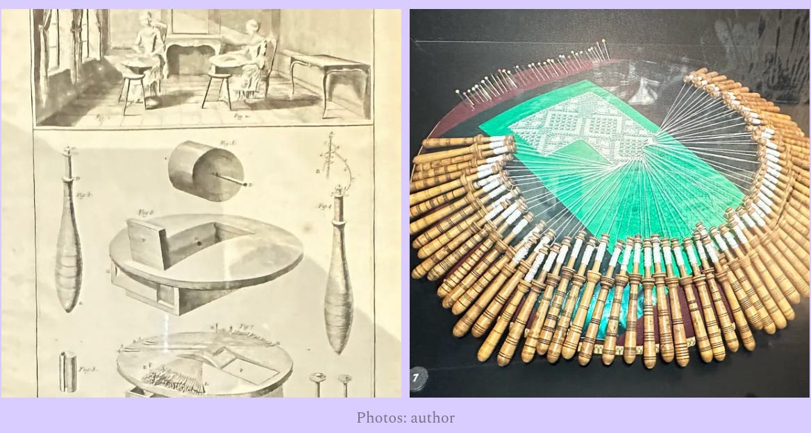 I was beginning to form a clearer understanding of how the different threads were twisted and woven together to form the net tulle and the motifs.