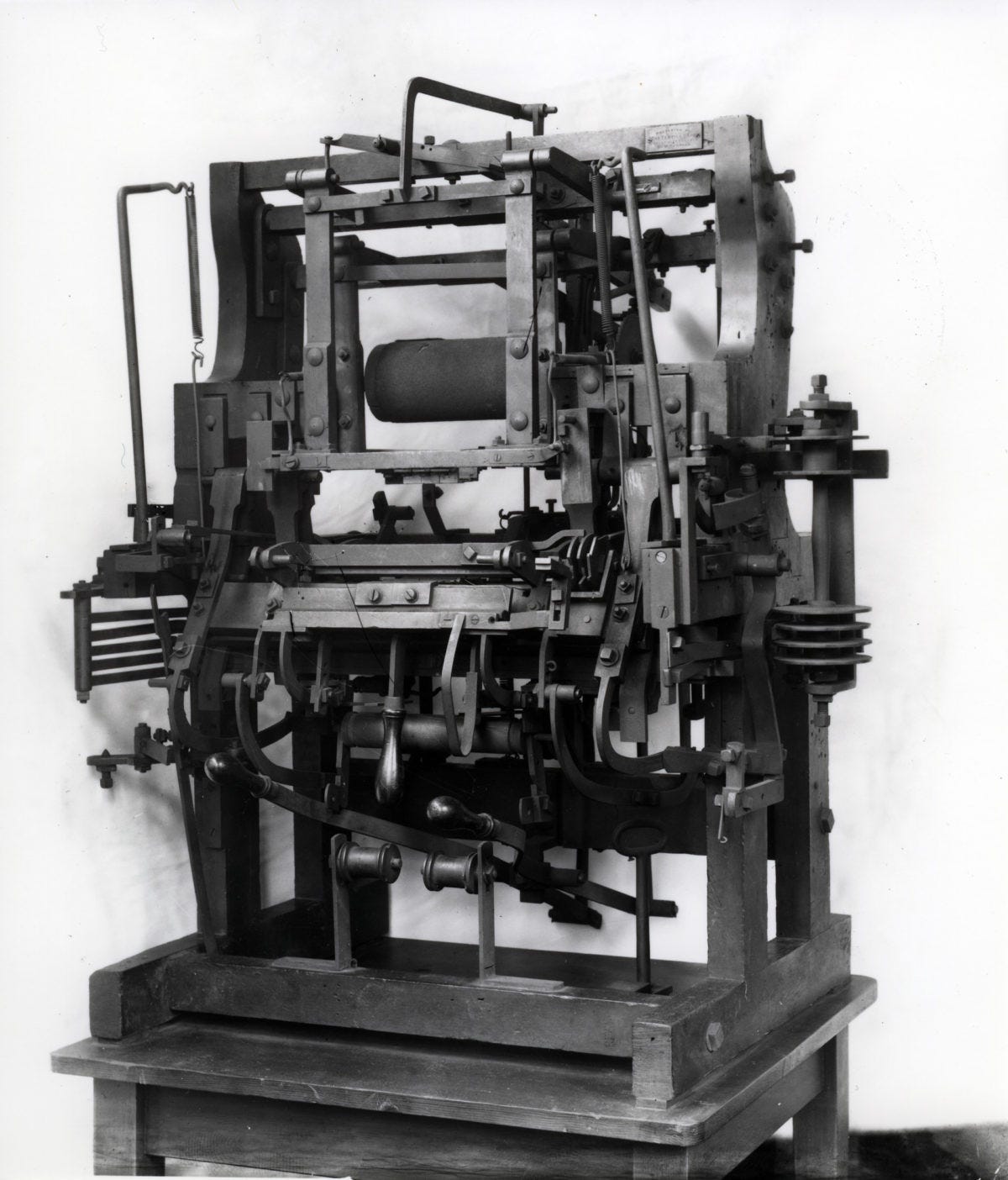 Photo: a rare wooden-framed Leavers machine made by John Levers in Nottingham, Nottingham City Museums and Galleries