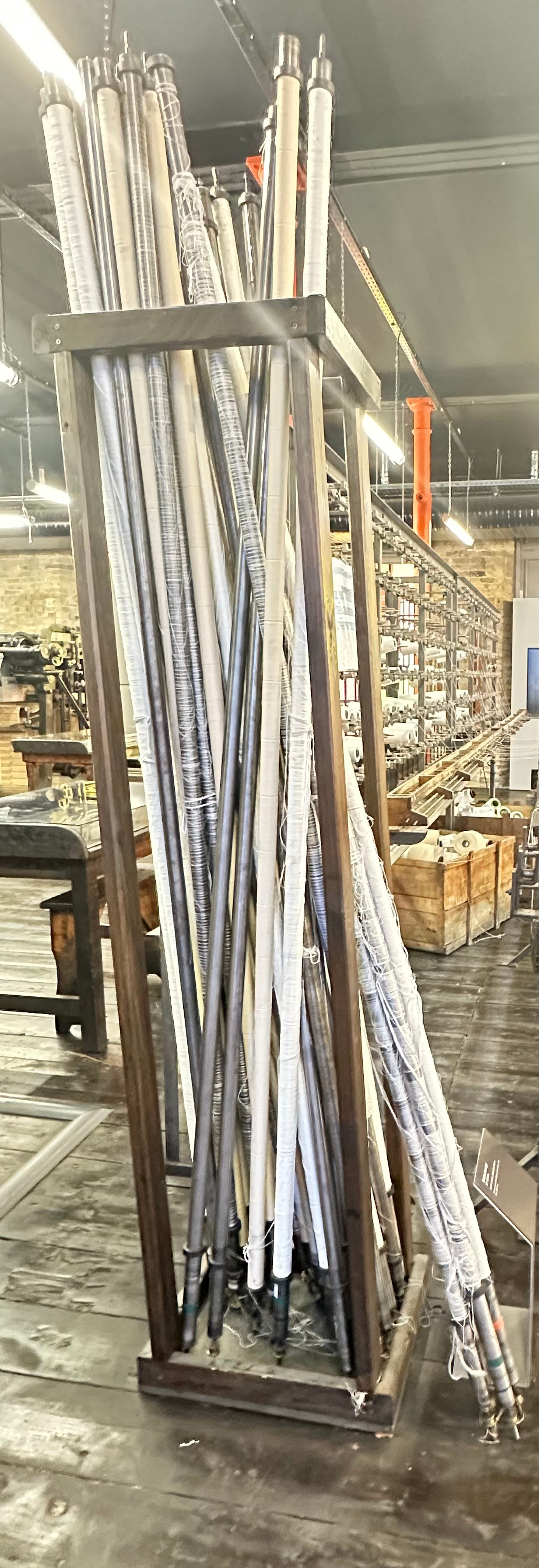 Photo: author, Warp bars wound with thread under tension, ready for the Leavers Machine.