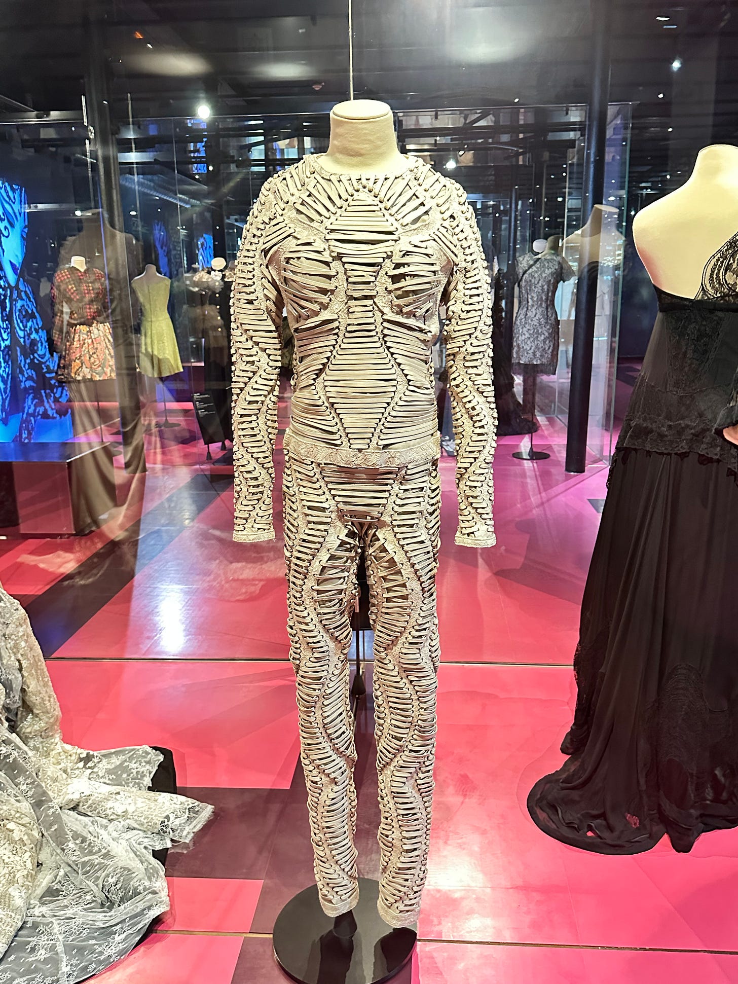 Photo: author, Iris VAN HERPEN, Jumpsuit 2013, Leather, Leavers Lace and metallic eyelets. You will need to look closely to identify the lace.