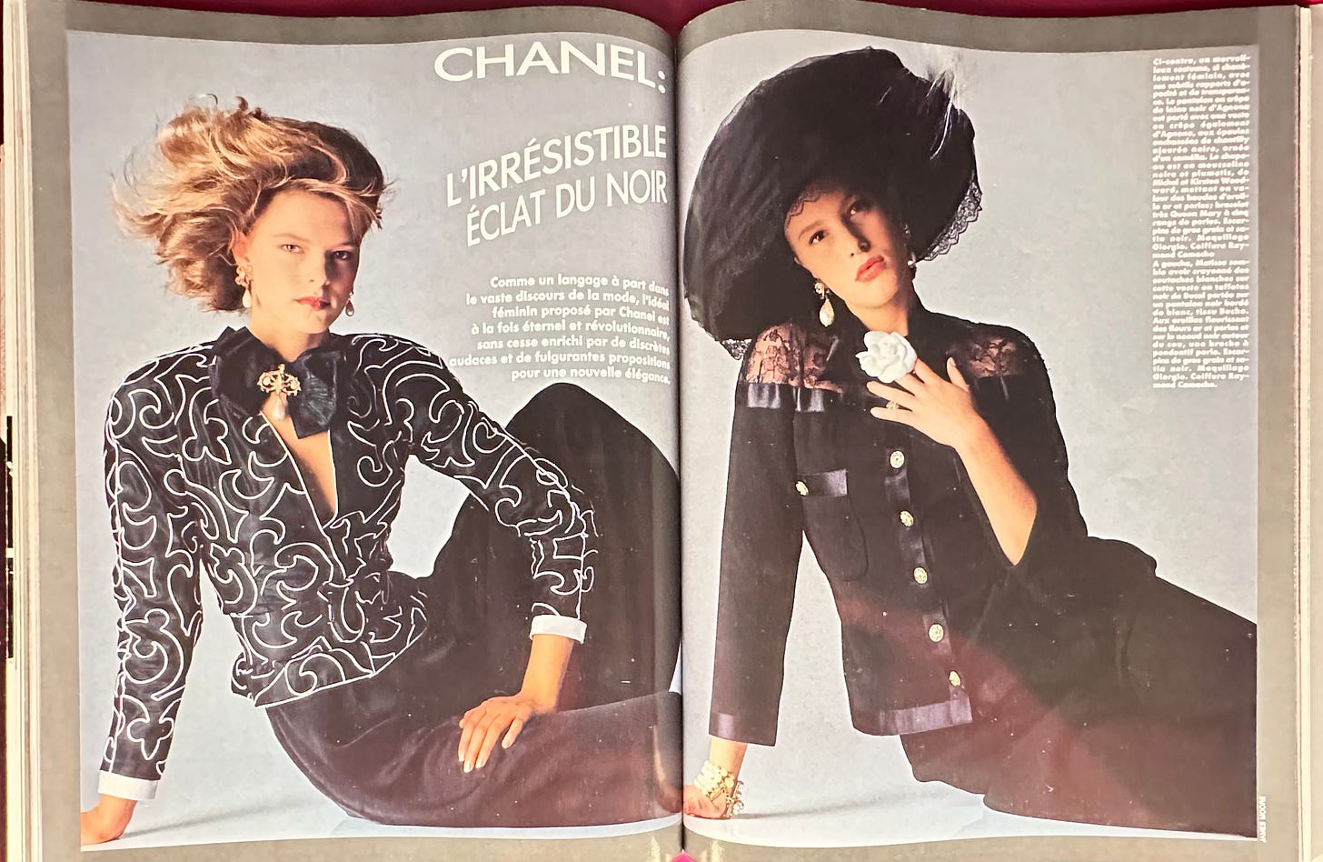 Photo: author, Article Chanel, l’irrésistible éclat du noir, Revue Harper’s Bazaar France,1988