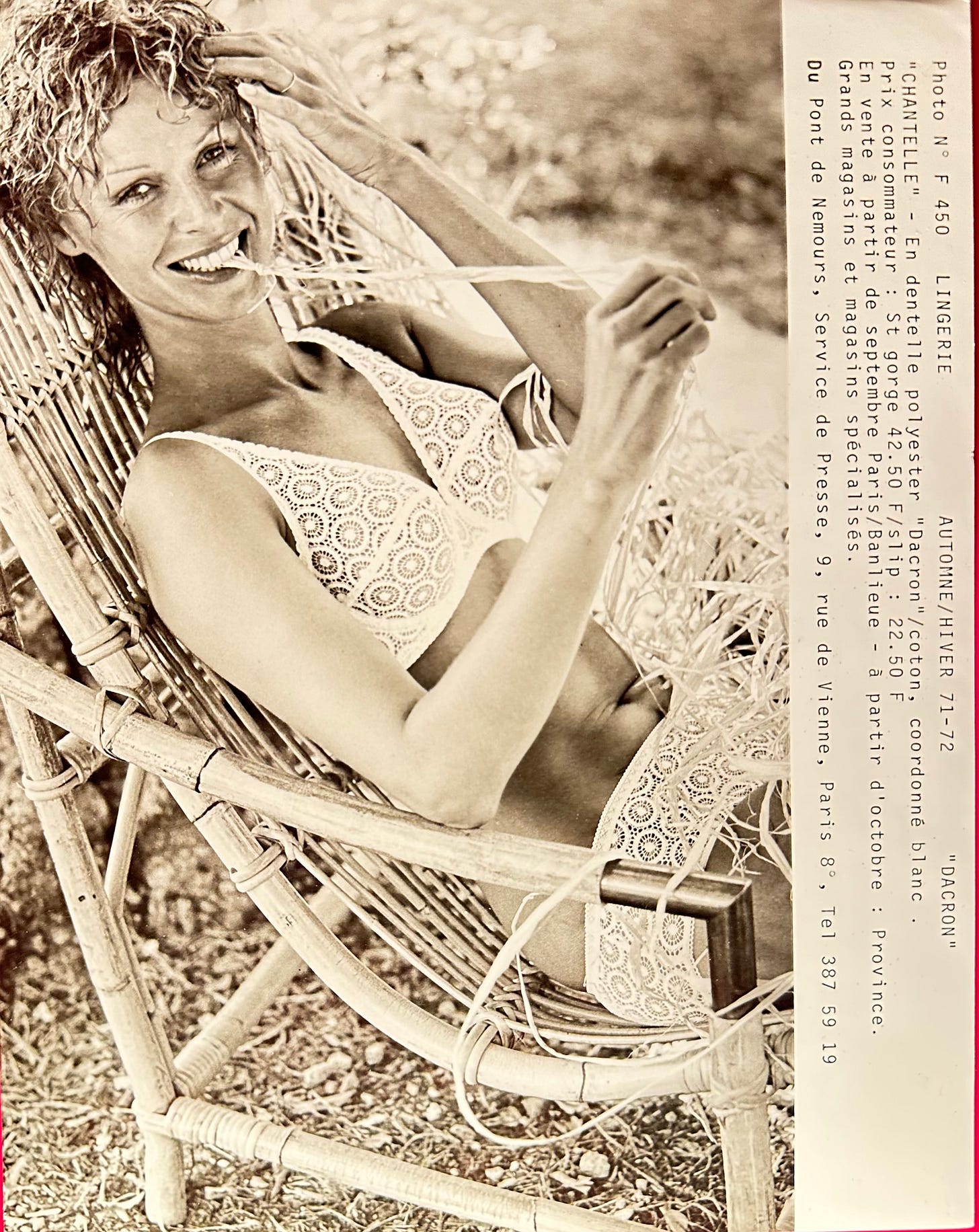 Photo: author, Advertisement for Chantelle lingerie with Peeters & Perrin lace, circa 1971