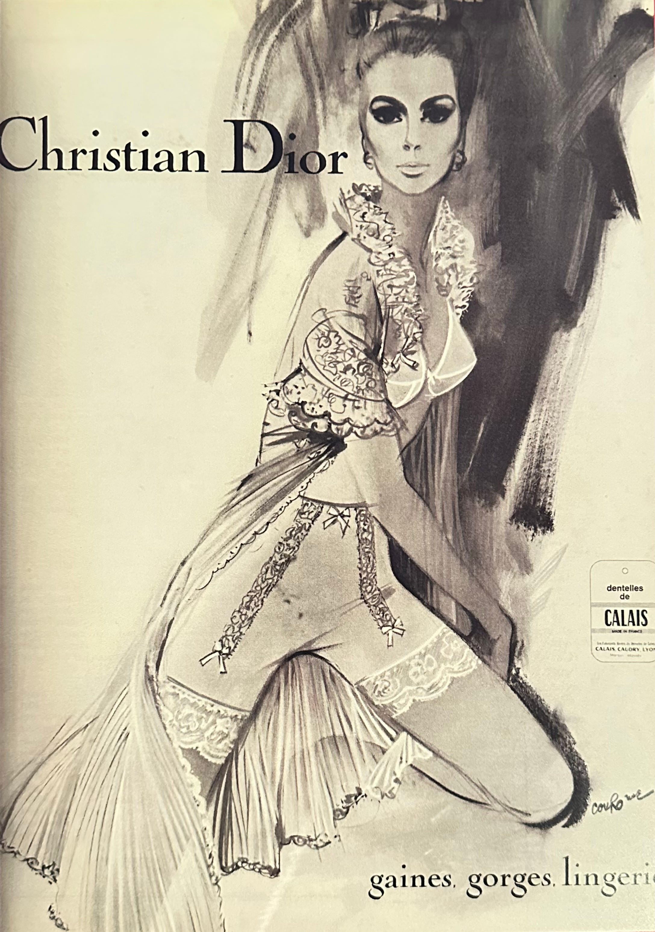 Photo: author, Advertisement for Christian Dior, mentioning Calais Lace, 1967, Revue Votre beauté