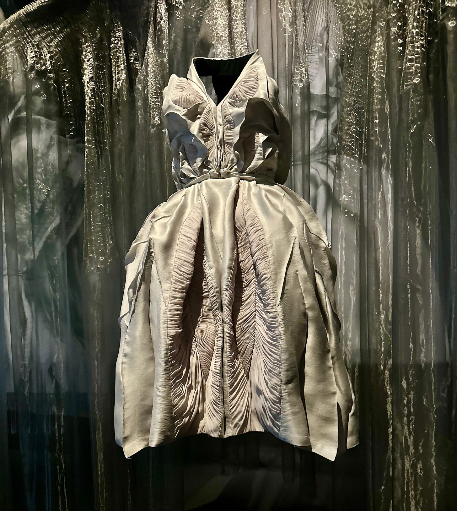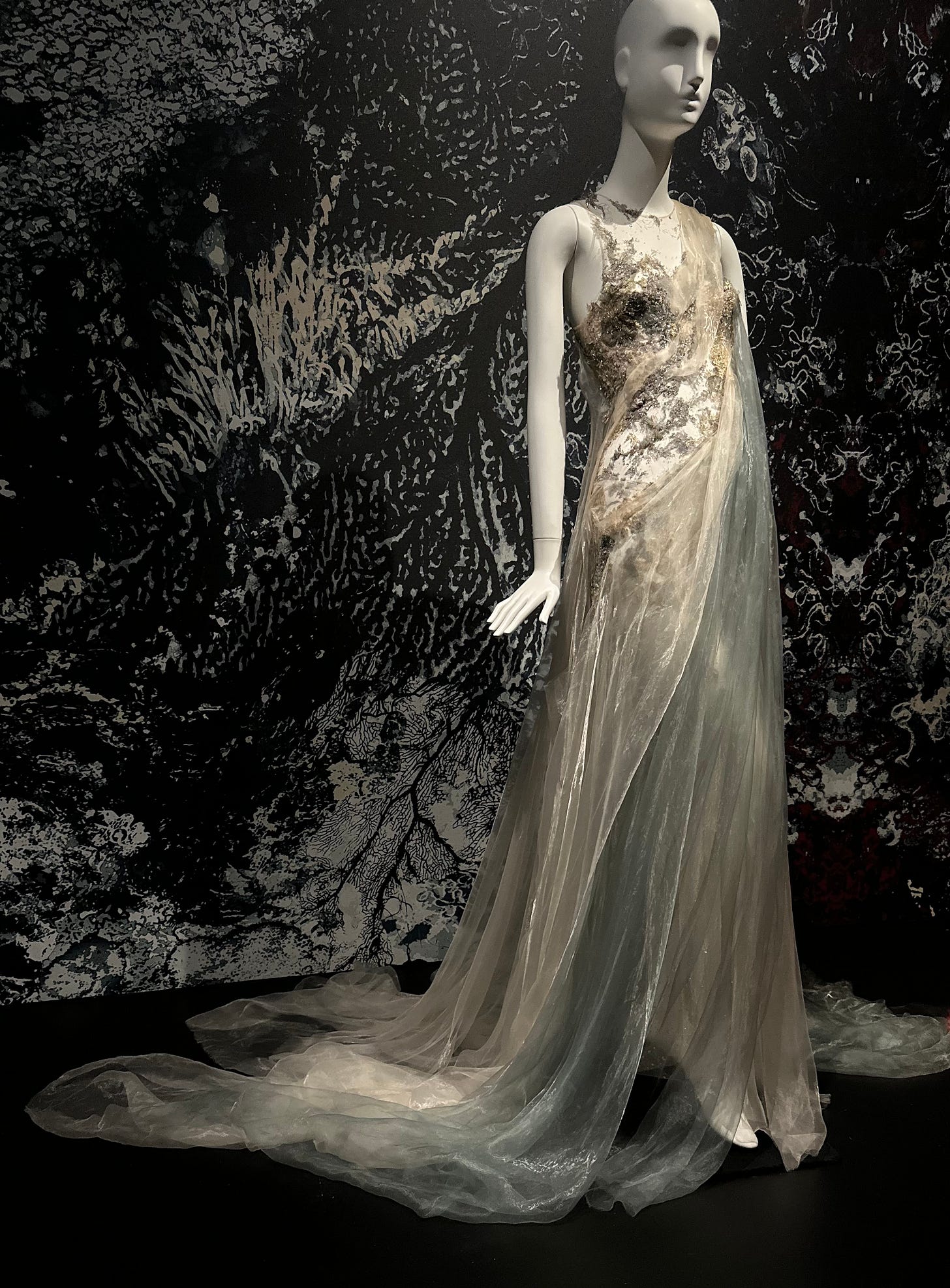 Photo: author, SHALIMA, Yiqing Yin, Collection Les Rives de Lunacy, Haute couture Autumn-Winter 2013-2014, Dress in beaded resin tulle and organza, embroidered with fragments of Sophie Hallette Leavers Lace and crystals.