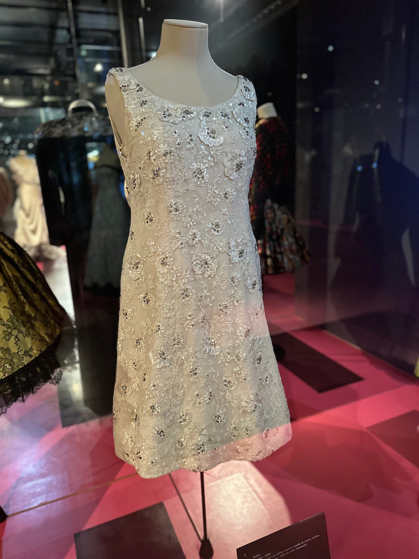 Photo: author, Dress, 1960, Leavers lace, embroidered with rhinestones, pearls, sequins and ribbons, cotton lining