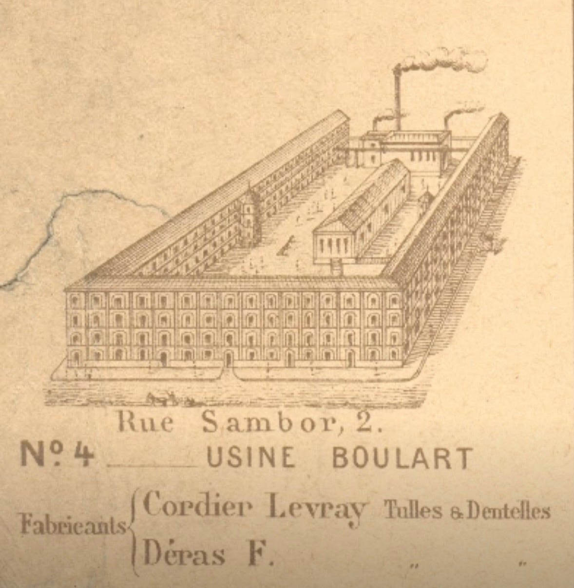 There were several successive waves of construction in Saint-Pierre-Calais: from 1840 to 1844, from 1850 to 1856, between 1868 and 1873, and finally the last and the biggest phase from 1878 to 1883, taking the number of Leavers Lace factories to over 50.