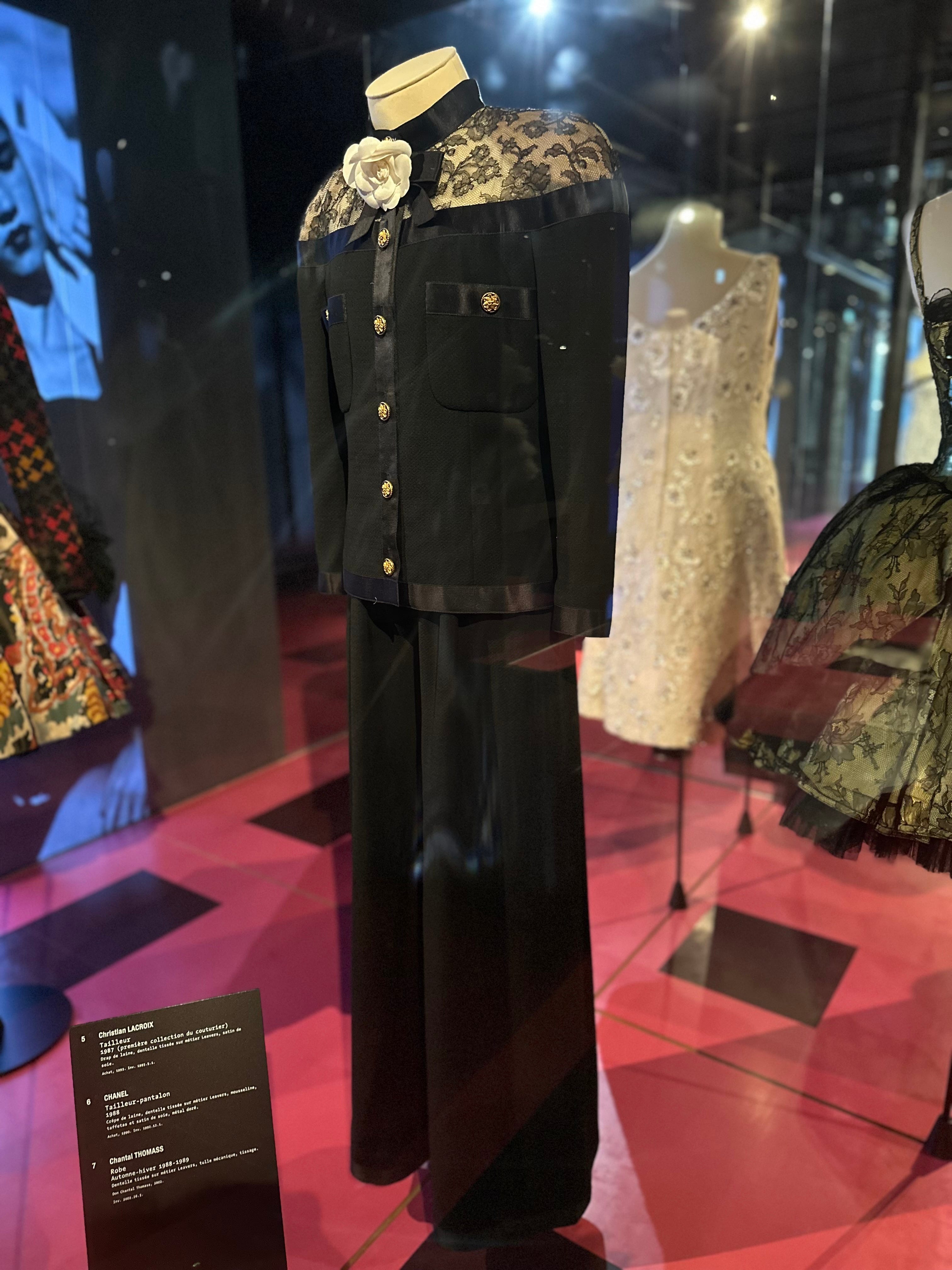 Photo: author, CHANEL, Trouser suit,1988, Wool crepe, Leavers loom lace, muslin, taffeta and sole satin, gold-tone metal.