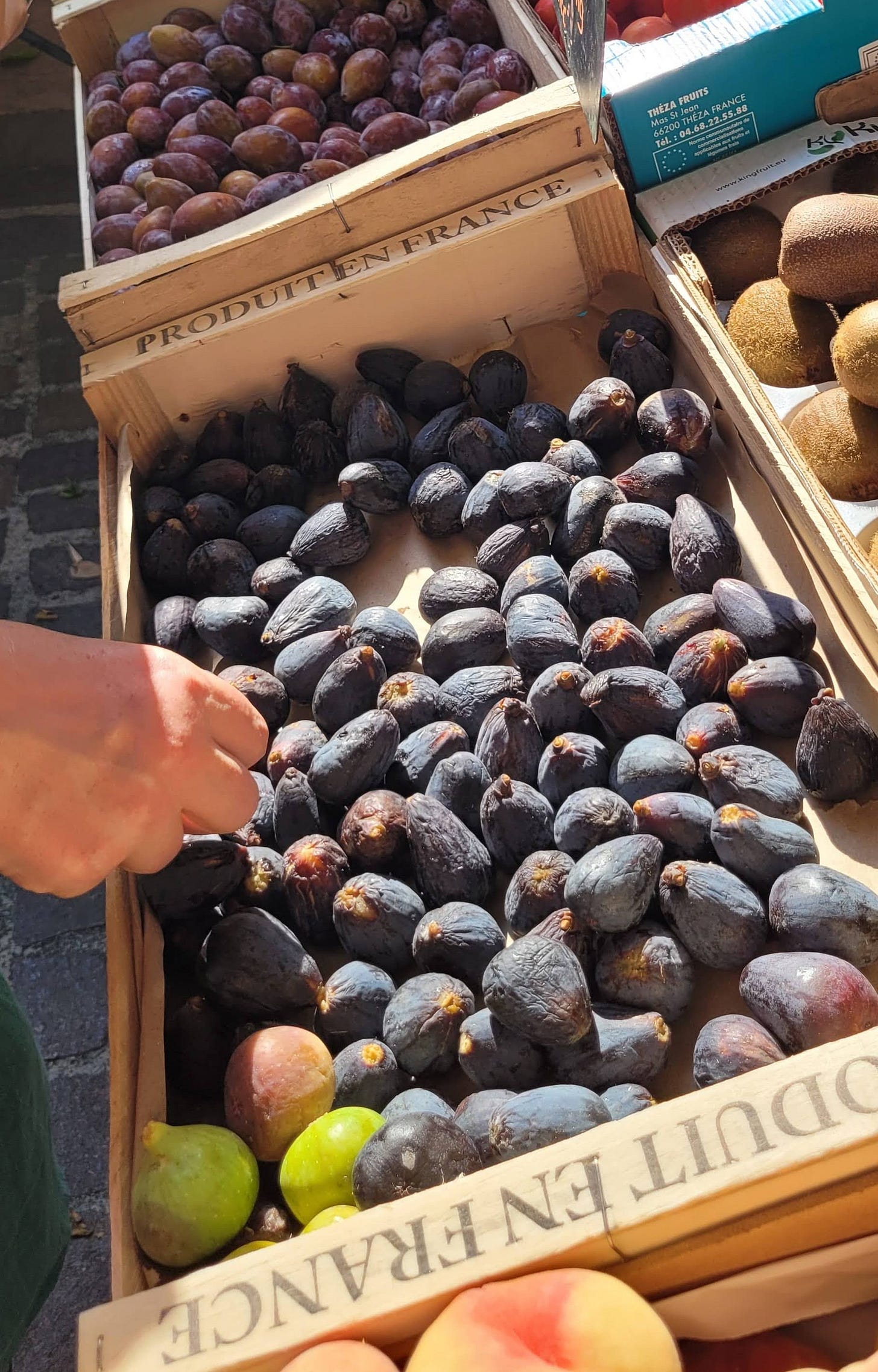 As the towns and cities empty for the summer holidays, our village is filling up. Today was market day, and the pavements were full of visitors in their flip flops and bright new T-shirts, babies in new hats, older children temporarily delighted with cheap plastic toys from the stalls. The man selling hammam towels is doing a brisk business, and the man selling bathing suits is giving a couple of ladies an impromptu seminar on the art of the tankini.