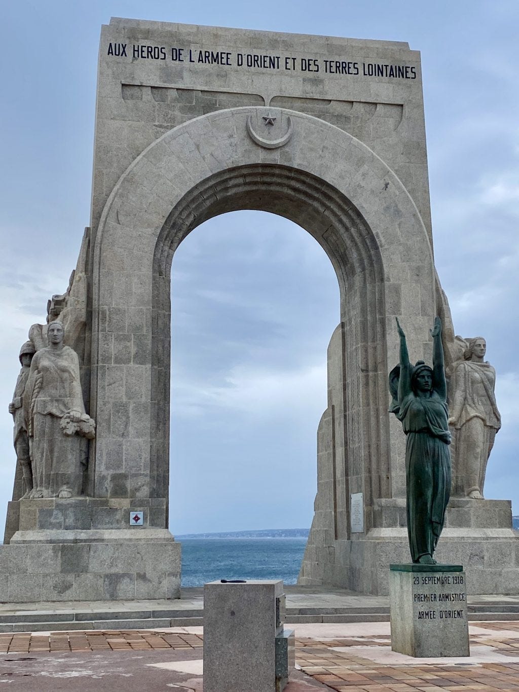 Now, you’ve arrived in the chic area of Marseille. I’ve been told that this is where the high society of Marseille lives and as one wanders around the area it’s easy to believe. Many houses are peering out from the hills with tremendous views of the Med… At the bottom of the Avenue du Prado, you may be blown away (as I was) to see a huge statue of David that welcomes you to the beach. Just Wow!