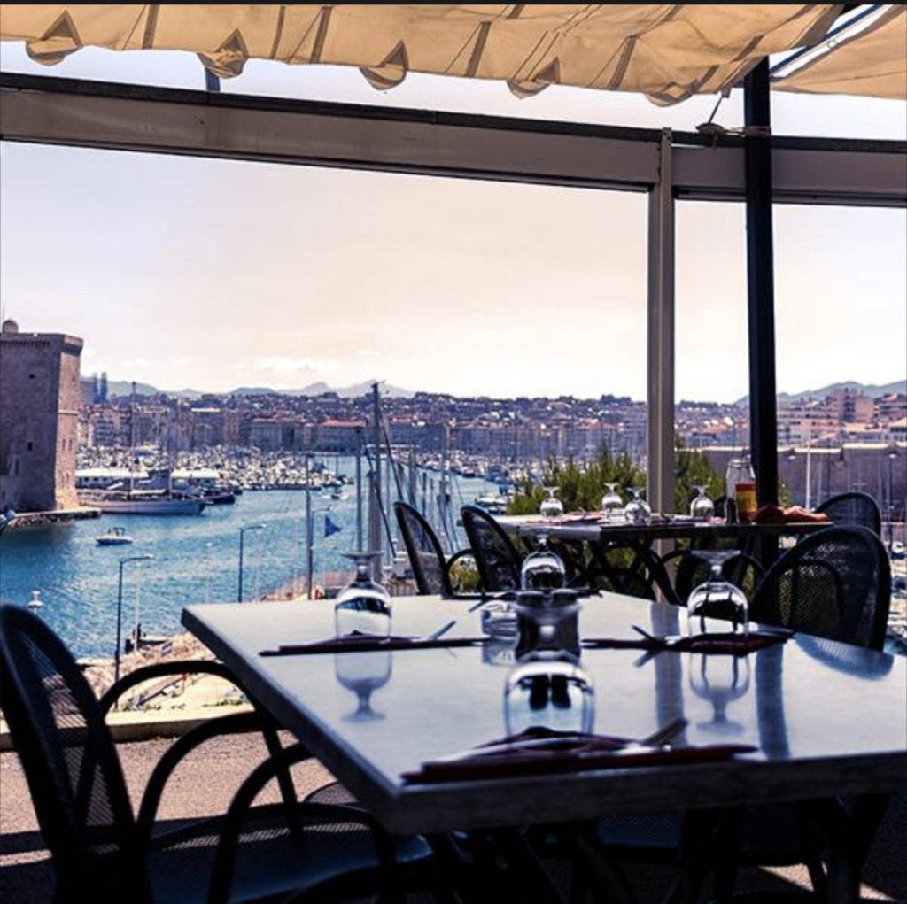 When you’re looking at the Palais in front of you, closer to the entrance, you’ll see a path to your right which will take you down to this spot. Here you can enjoy a little bite or a coffee and take in the exceptional views of the Port du Marseille.