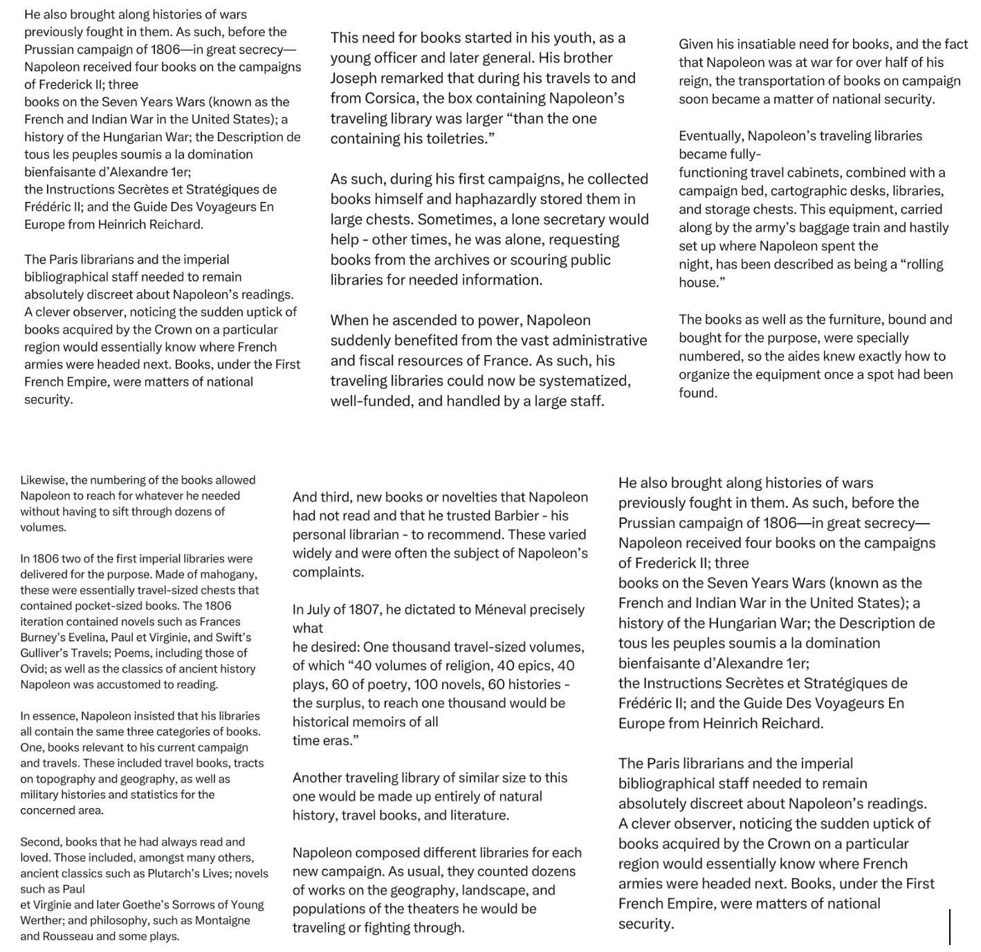 I knew that Napoleon was an avid and intentional reader but either I didn’t know the extent of his reading or I didn’t know” Judy MacMahon