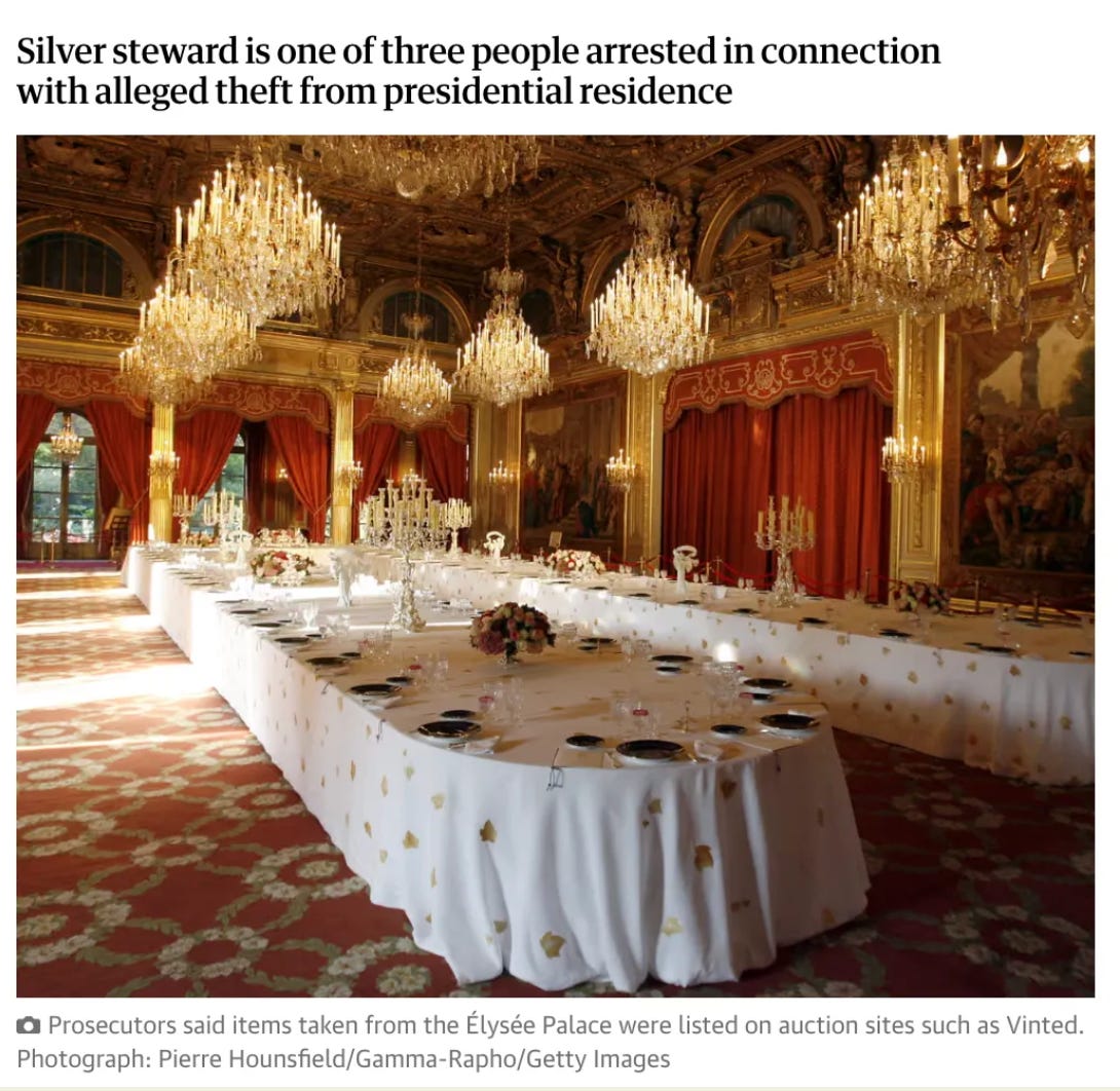 But here’s the kicker: while all this ‘Ocean’s’ drama was unfolding, back at the Élysée Palace, hospitality worker Thomas M. was running his own side hustle. His job? Protecting century-old heritage silverware. His actual activity? Nicking it and selling it online.
