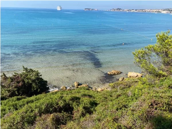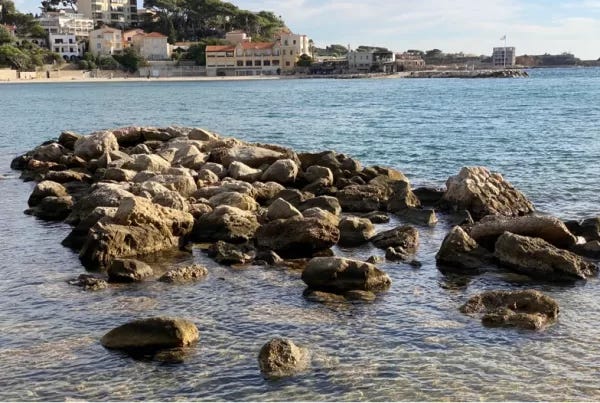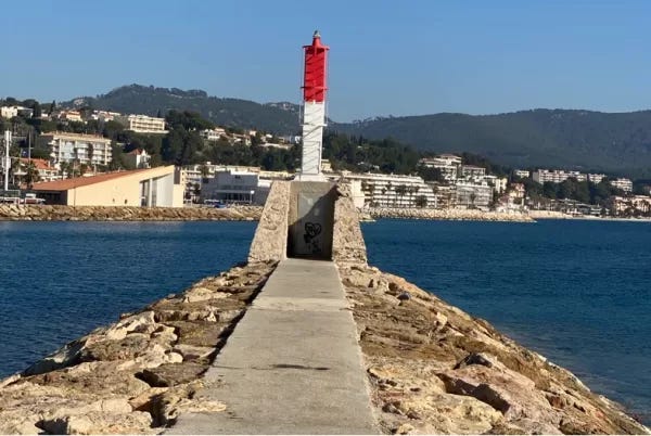 Halfway along the bay and halfway to Bandol, there is a cafe on the right. This place is always busy. The French doing what they love best. Drinking coffee and soaking up the sun. This appears to me to be the spot where one is to see and be seen. I’ve stopped in a few times but usually, I keep walking admiring the glamorous crowd to my right.