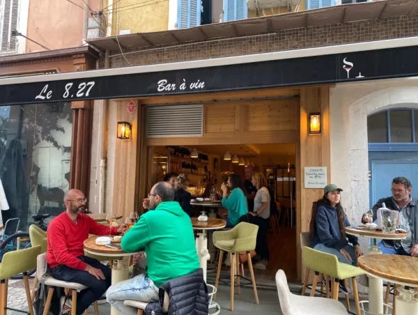 Bandol is bursting with cafes. The entire walk at the beginning and then into the heart of the town where across from the harbor are many sunny spots to choose from. I have found all of them to be good. I think that you need to look at them and select the vibe that you’re in the mood for.