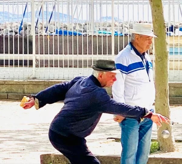It is a reminder that this boule park has been there for a very long time and it probably doesn’t look much different today than it did in the past. You can still see men dressed in button-down shirts, light jackets, and often a cap on their heads.