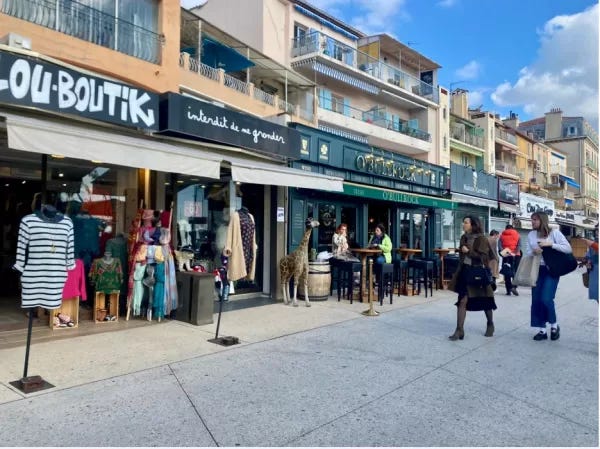 There are many options at this point… stop and have coffee here or keep on going and hit the heart of Bandol. I do have one place where I like to stop, but often I check out the shops, and then I head down to the main area.